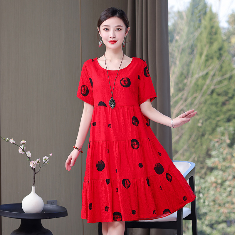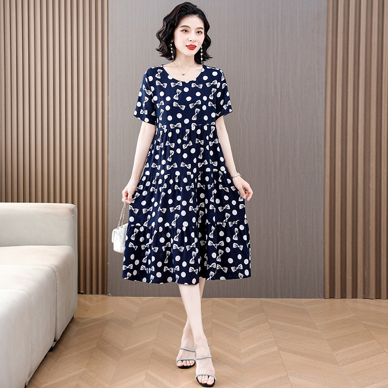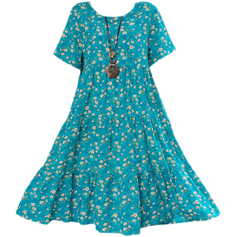 2025年新款夏季碎花棉绸大摆连衣裙大码胖mm显瘦外穿洋气印花裙子