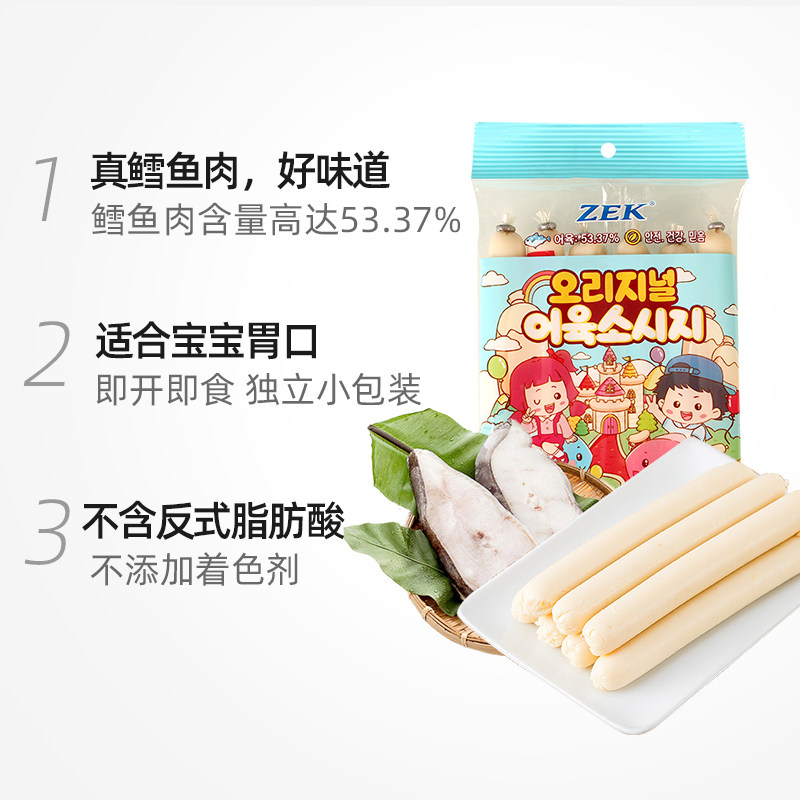 zek鳕鱼肠儿童辅食韩国进口鱼肉肠零食即食玉米肠海味105g