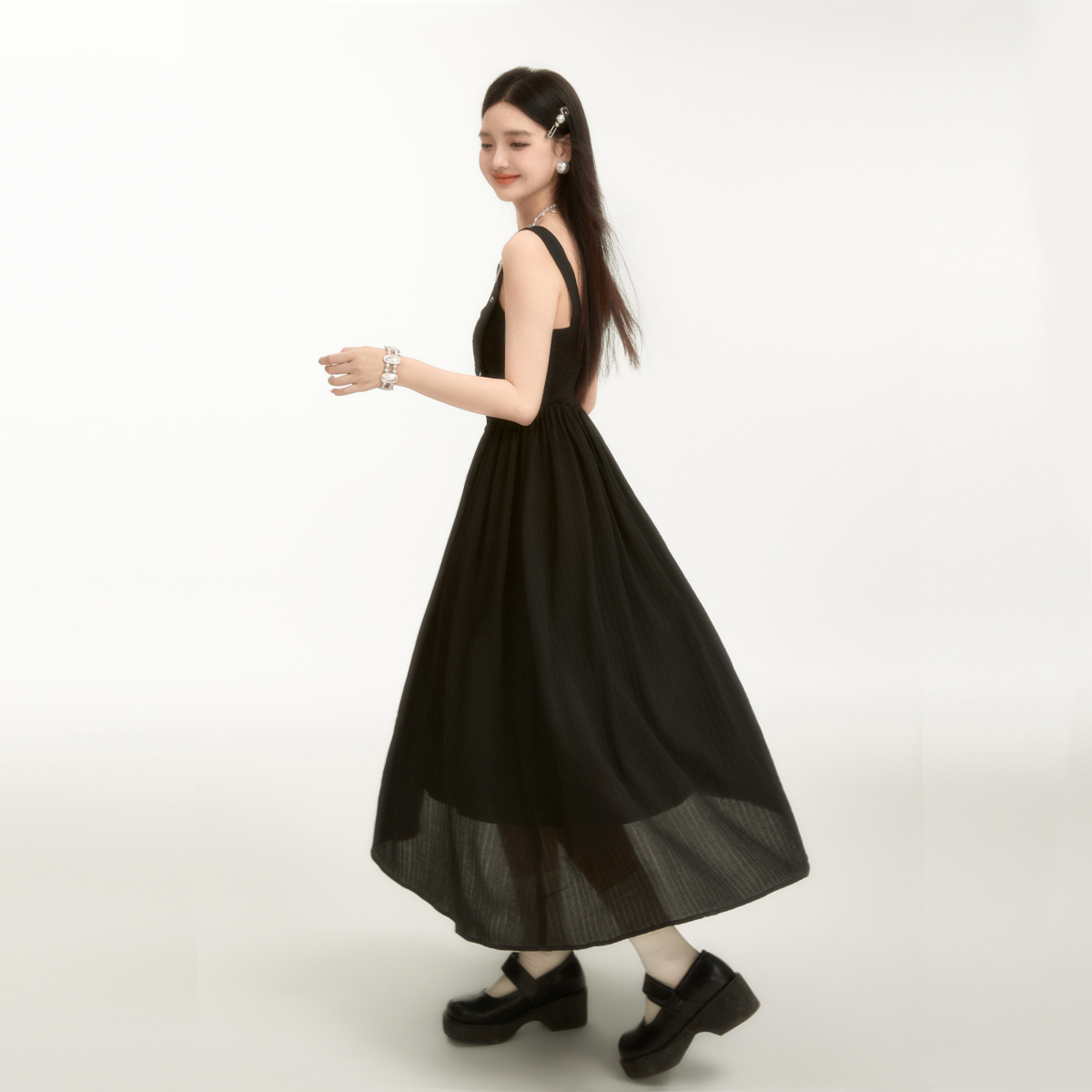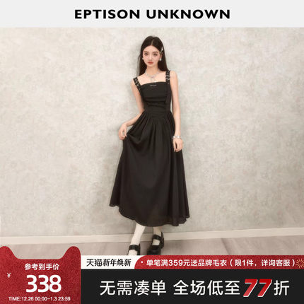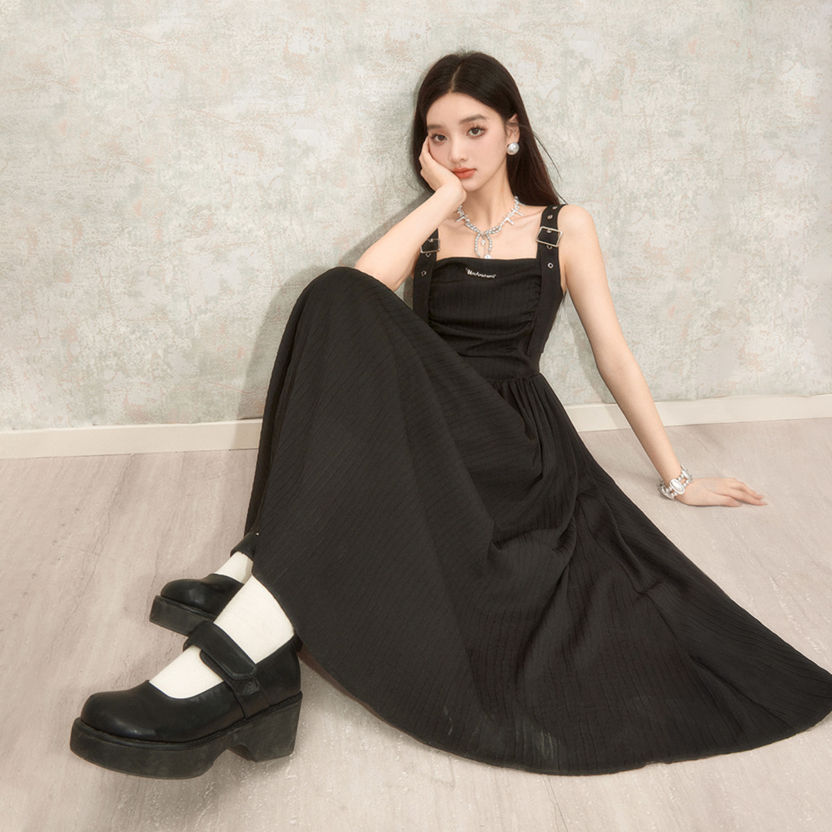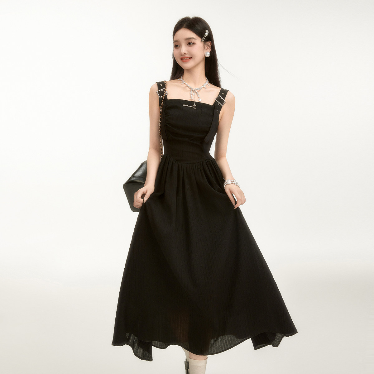EPTISON背带连衣裙女2025夏季新款高级感收腰黑色甜辣小个子长裙