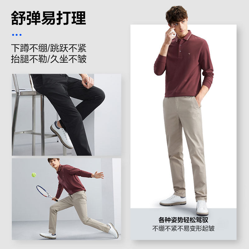柒牌弹力休闲裤男款2024春季新款中年男士商务直筒爸爸工装长裤子