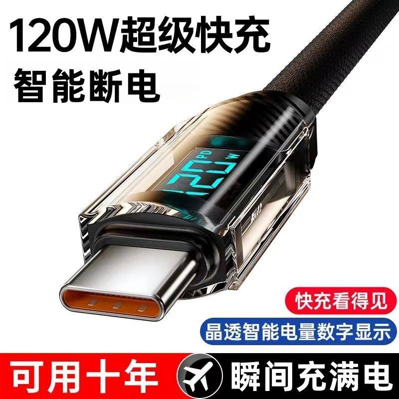 120w智能数显快充数据线typc显示功率适用华为适用苹果OPPO充电线