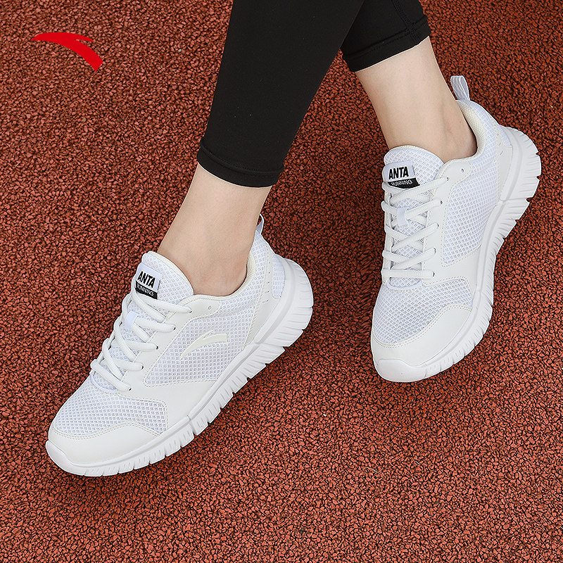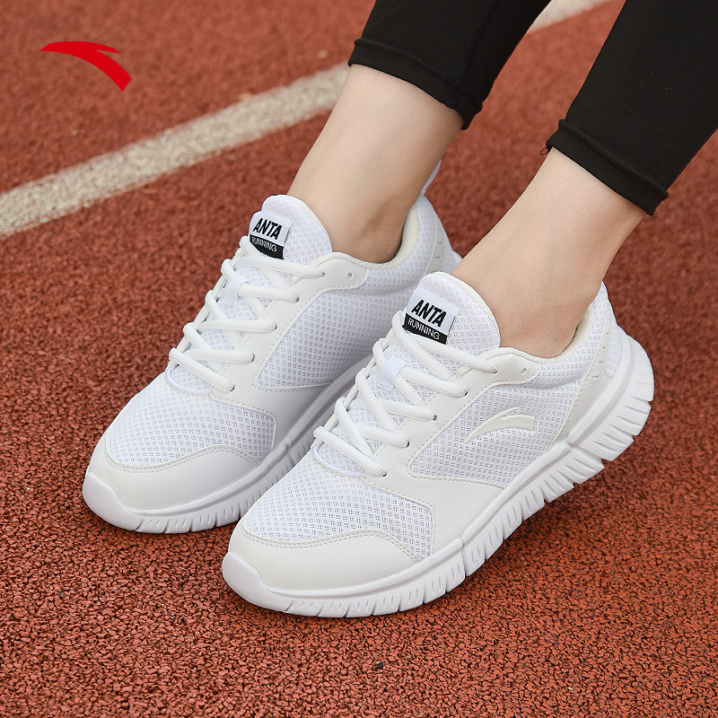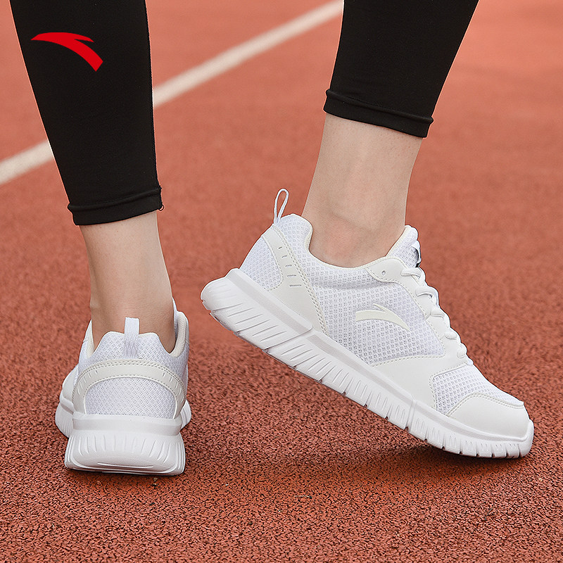 安踏女鞋白色跑步鞋女款2025冬季新款网鞋透气学生轻便软底运动鞋