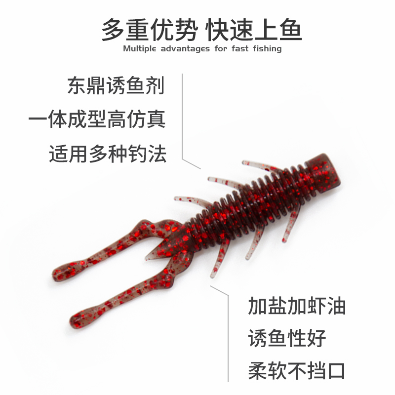 东鼎内德浮水虾型软饵软虫假饵路亚黑坑鳜鲈鱼铅头钩倒钓2.5-3寸