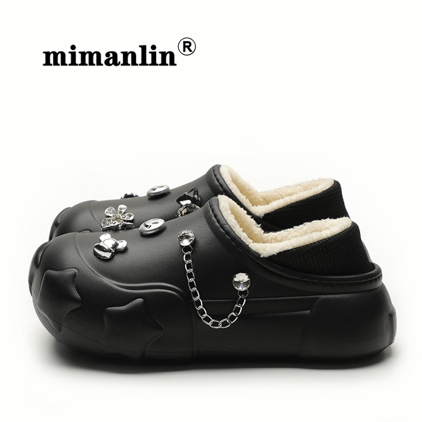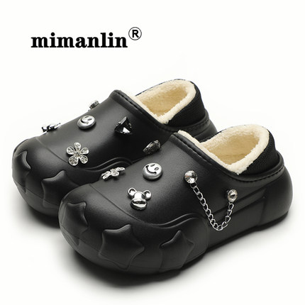 棉拖鞋女包跟秋冬厚底可外穿防滑防水雪地靴时尚网红水钻月子棉鞋