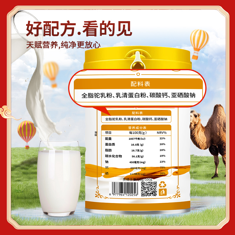 新疆正宗驼乳粉高钙驼奶粉益生菌中老年儿童无蔗糖全家营养奶粉