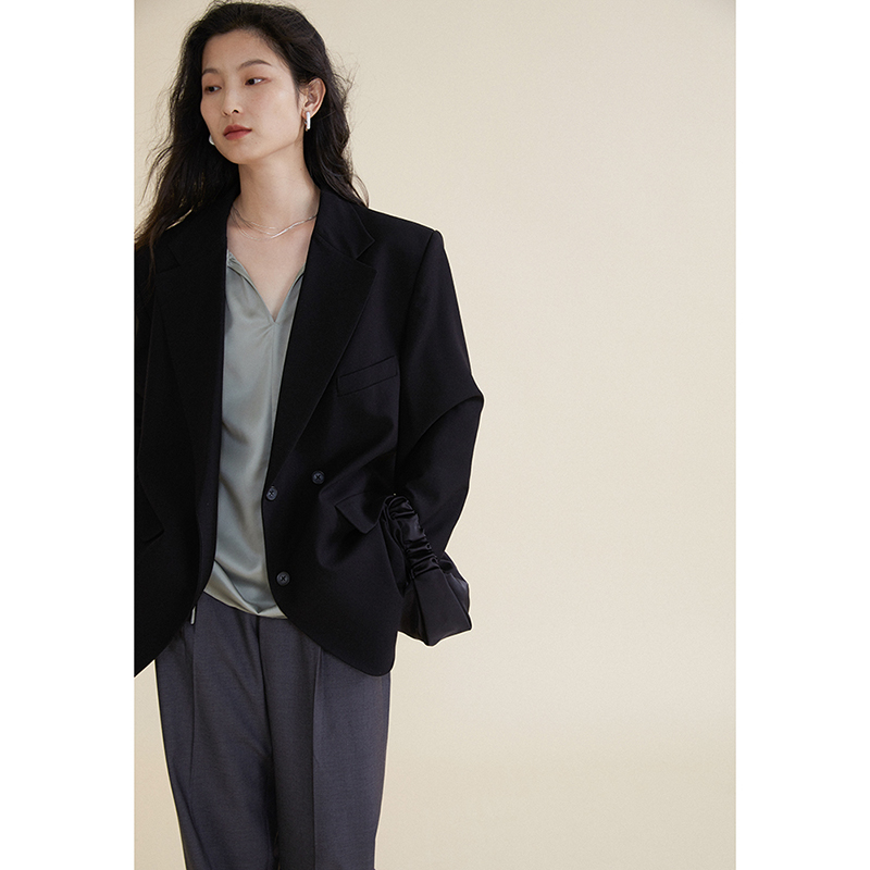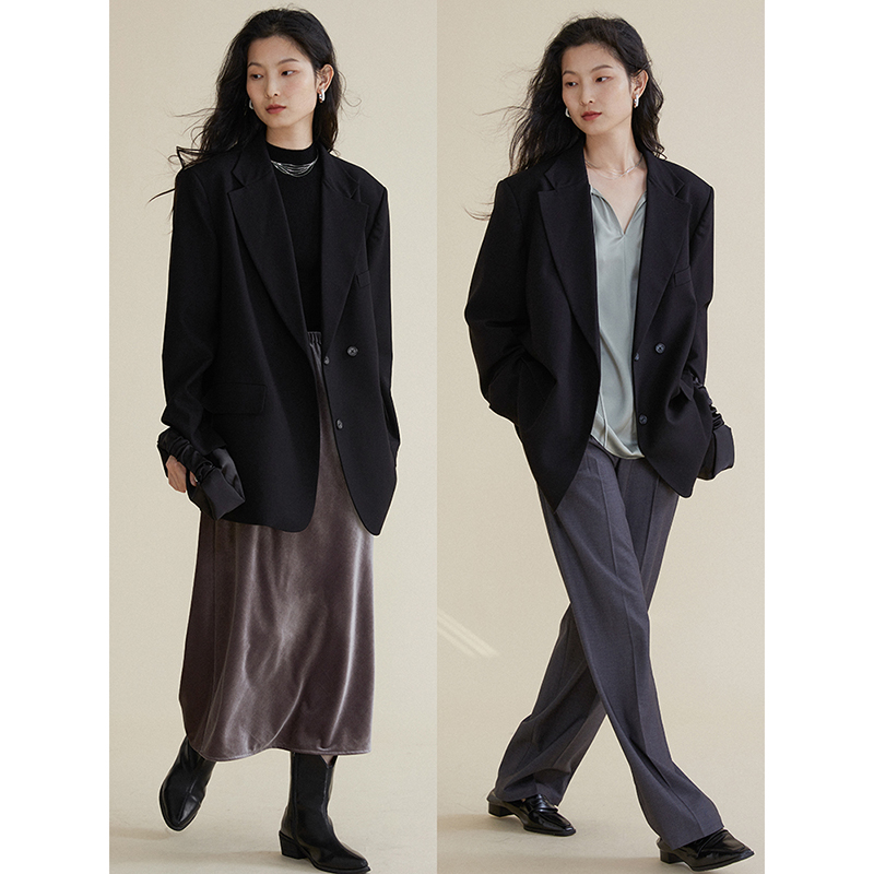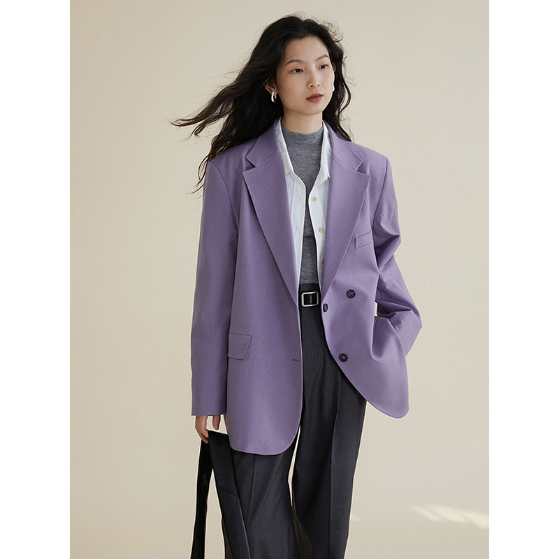 popchrio◆羊毛混纺廓形宽肩休闲小西装外套宽松西服上衣通勤女春