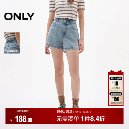ONLY2025夏季新款莱赛尔蝴蝶结高腰两粒扣A字遮肉短裤牛仔裤女