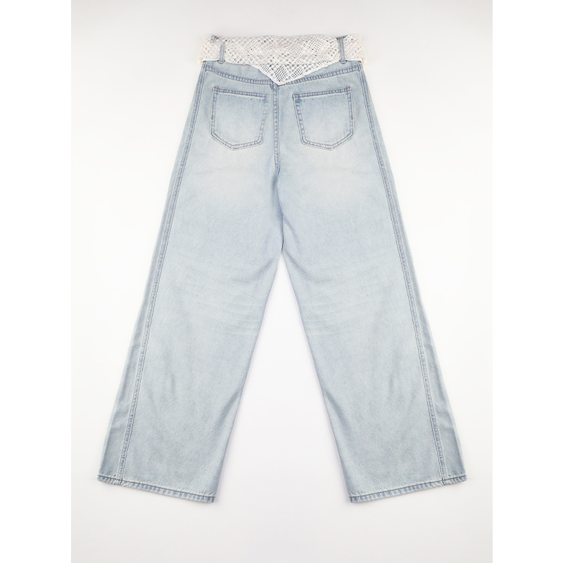 奈斯帕2025夏季新款怀旧破洞直筒牛仔裤中腰宽松显瘦阔腿女长裤