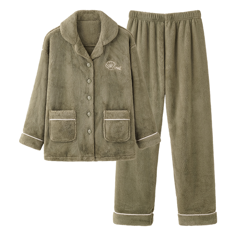 浪莎法兰绒睡衣女冬季套装加绒加厚珊瑚绒女士宽松妈妈家居服保暖