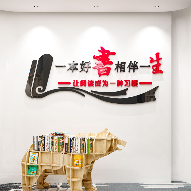 班级教室文化背景墙读书角阅读室墙面装饰布置图书馆3d立体墙贴画