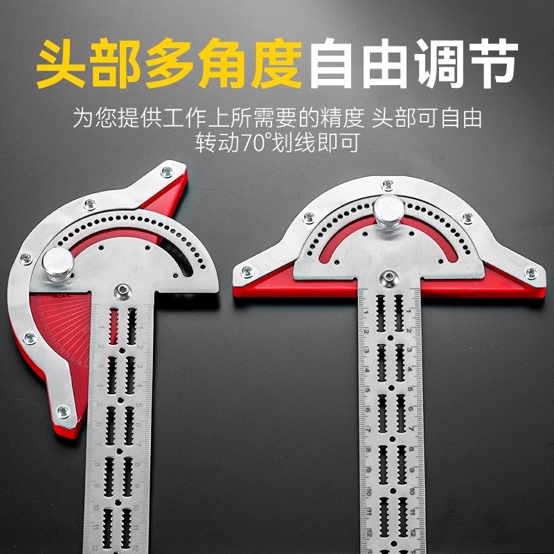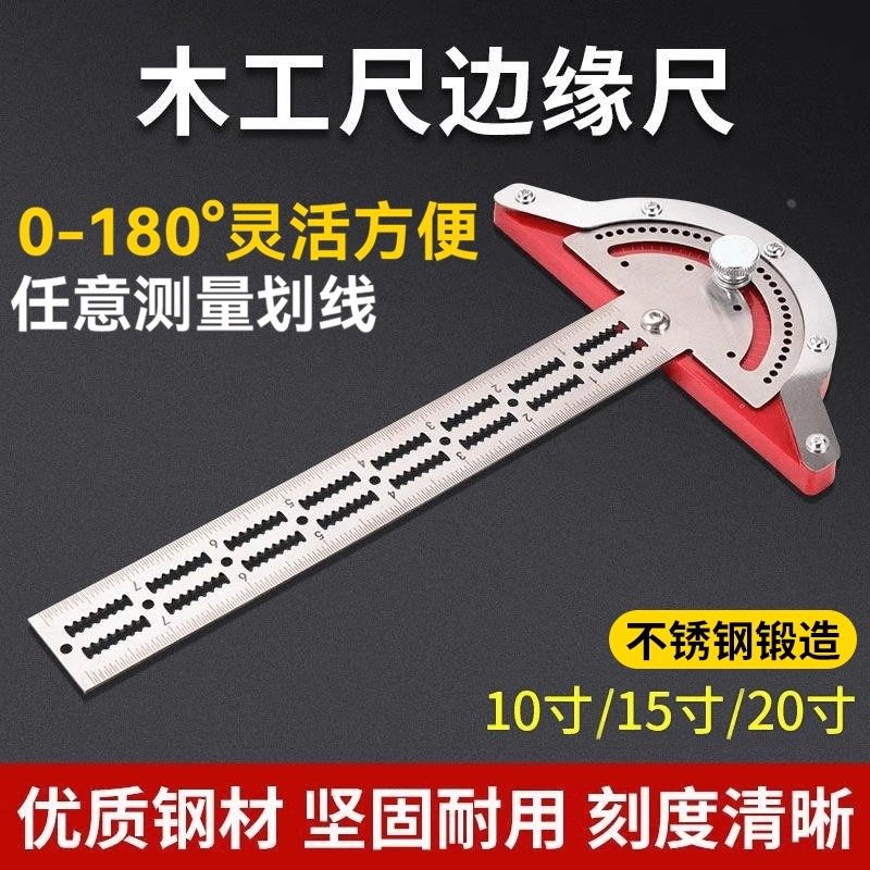 多功能木工尺边缘尺设计角度尺不锈钢尺测量工具半圆活动量角角尺