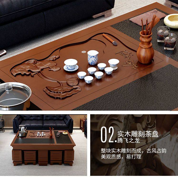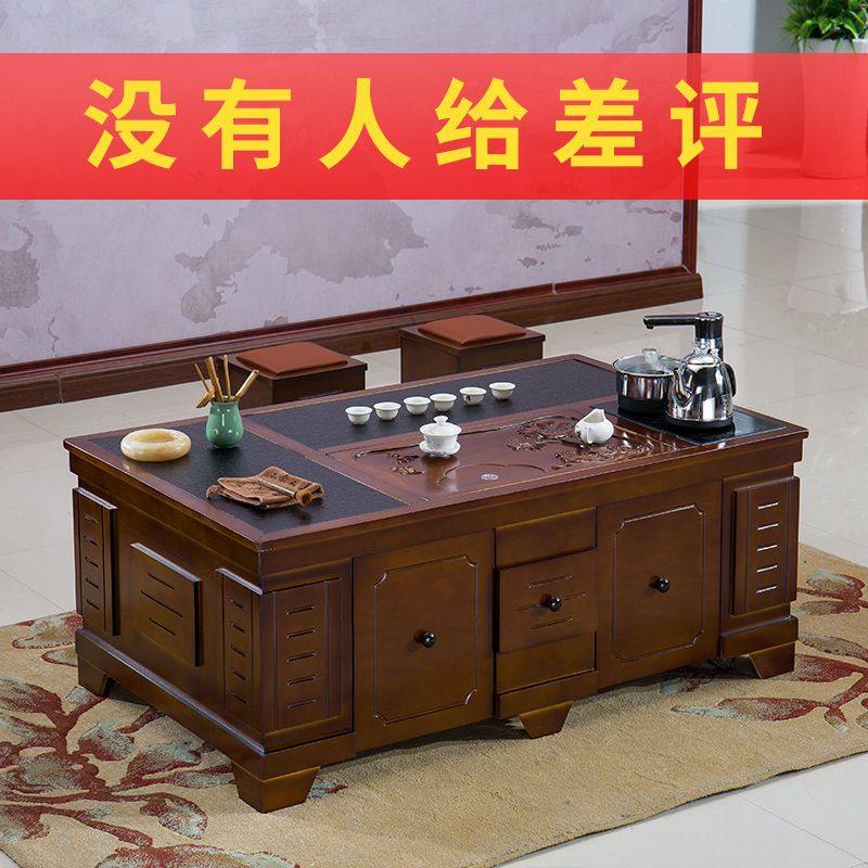 功夫茶几现代简约火烧石多功能茶桌组合办公家用茶盘客厅实木茶台