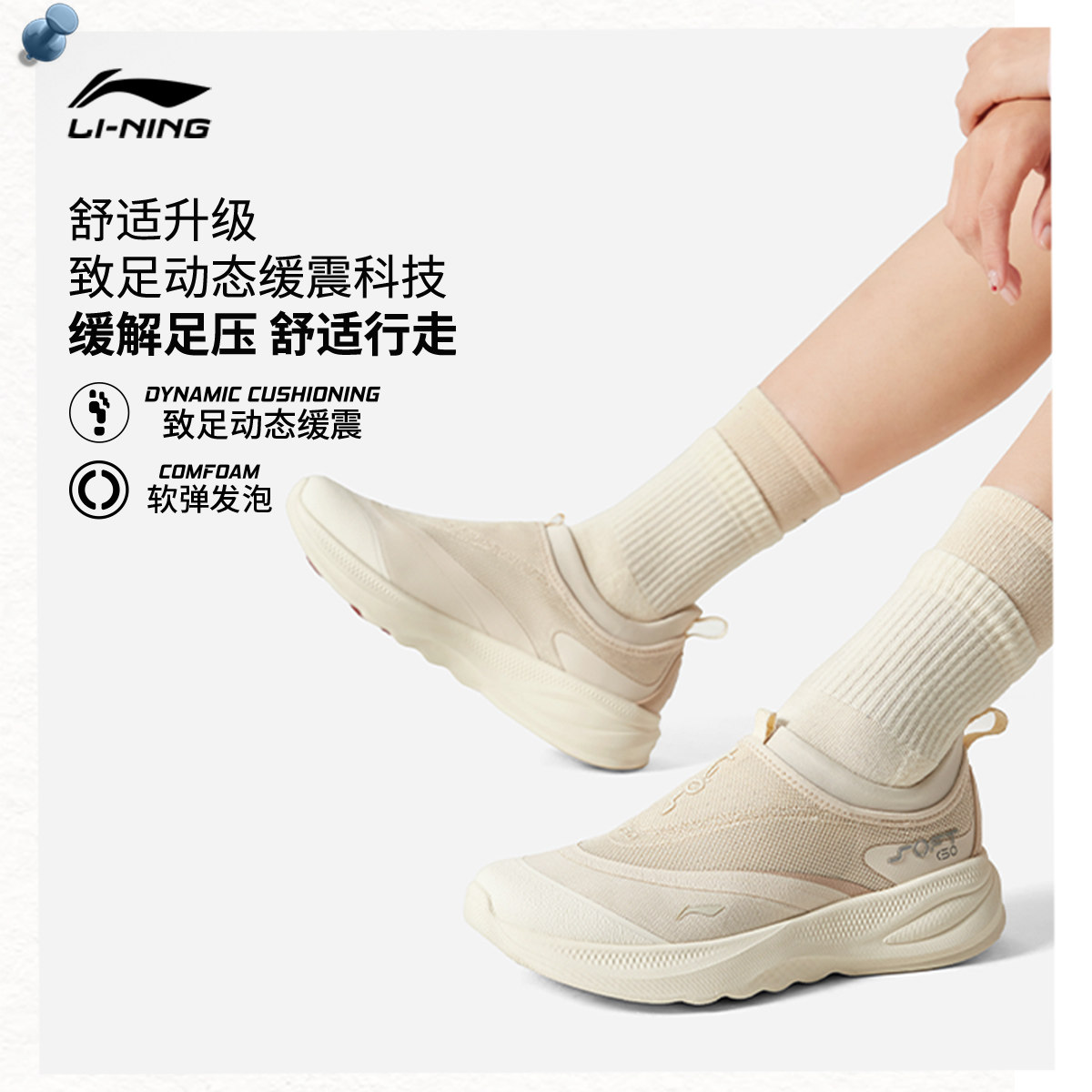 李宁SOFT GO 2丨休闲鞋女鞋新款潮流一脚蹬轻便舒适跑步运动鞋子