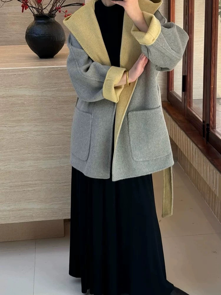 100%双面羊毛大衣秋冬两面穿女韩版气质显瘦系带中长款毛呢外套女