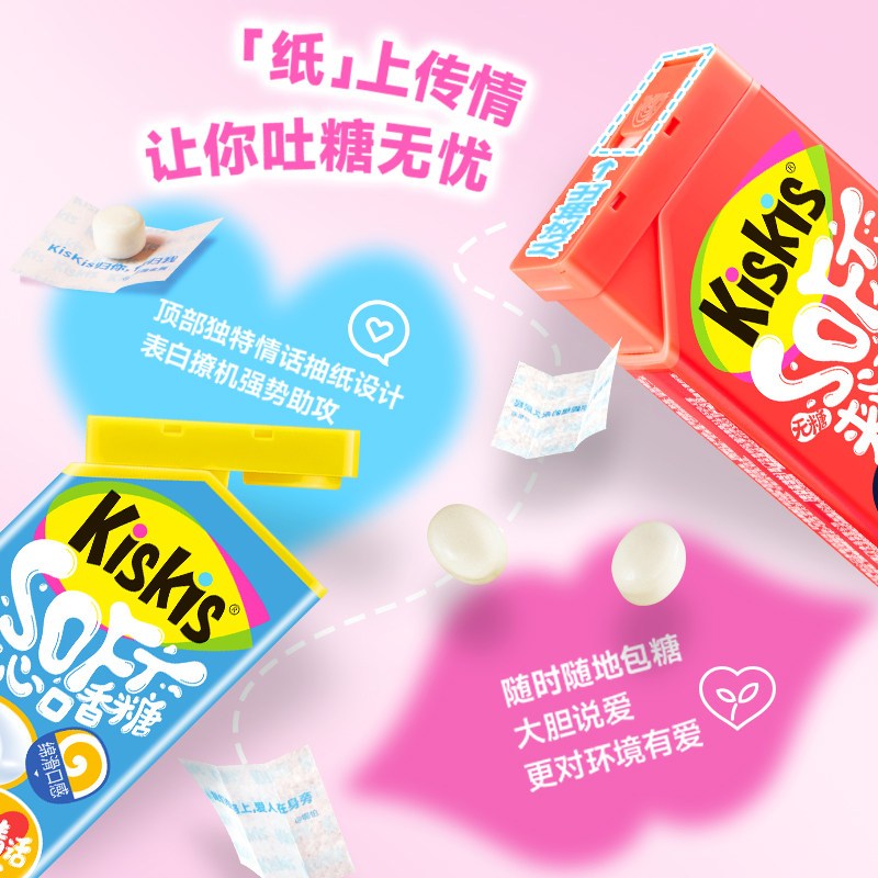 KisKis酷滋情话口香糖无糖木糖醇夹心清新口气约会表白糖水蜜桃味