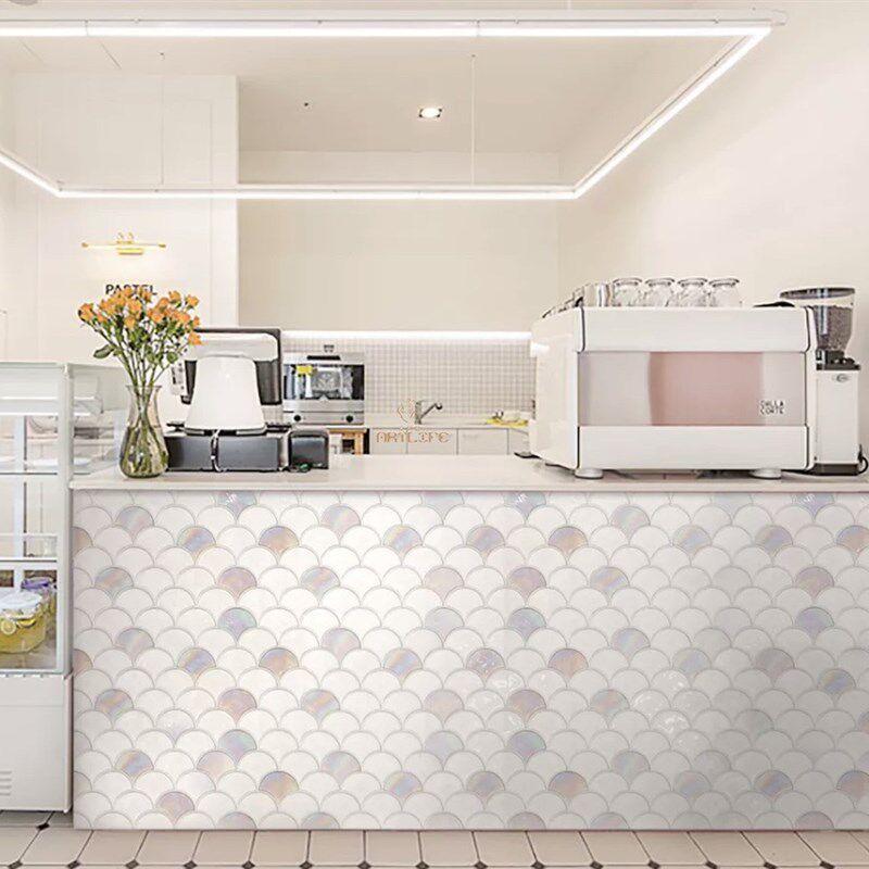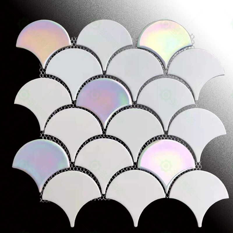 陶瓷幻彩白色鱼鳞扇形瓷砖马赛克厨房背景墙卫生间新中式背景墙砖