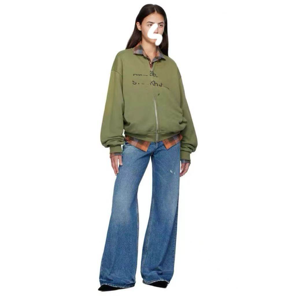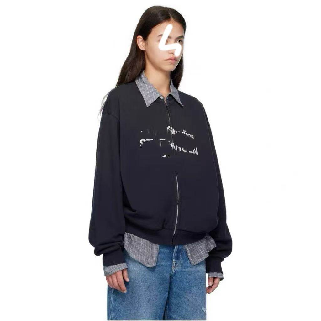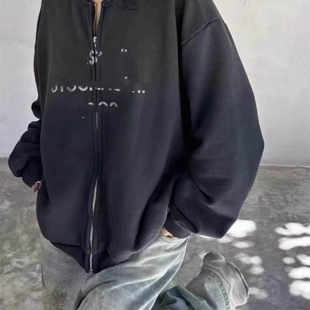 复古做旧做破褪色印花字母1996拉链棒球服棉质外套25092440