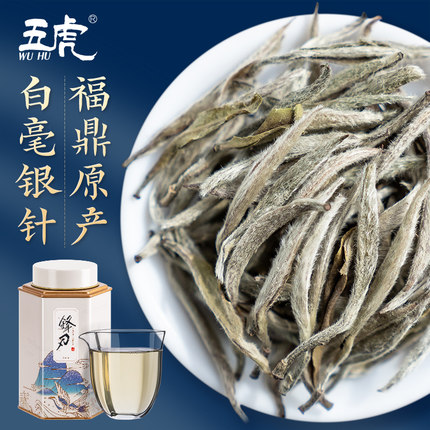 五虎锋刃正宗福鼎白茶白毫银针茶叶特级白豪银针茶叶散茶罐装礼盒