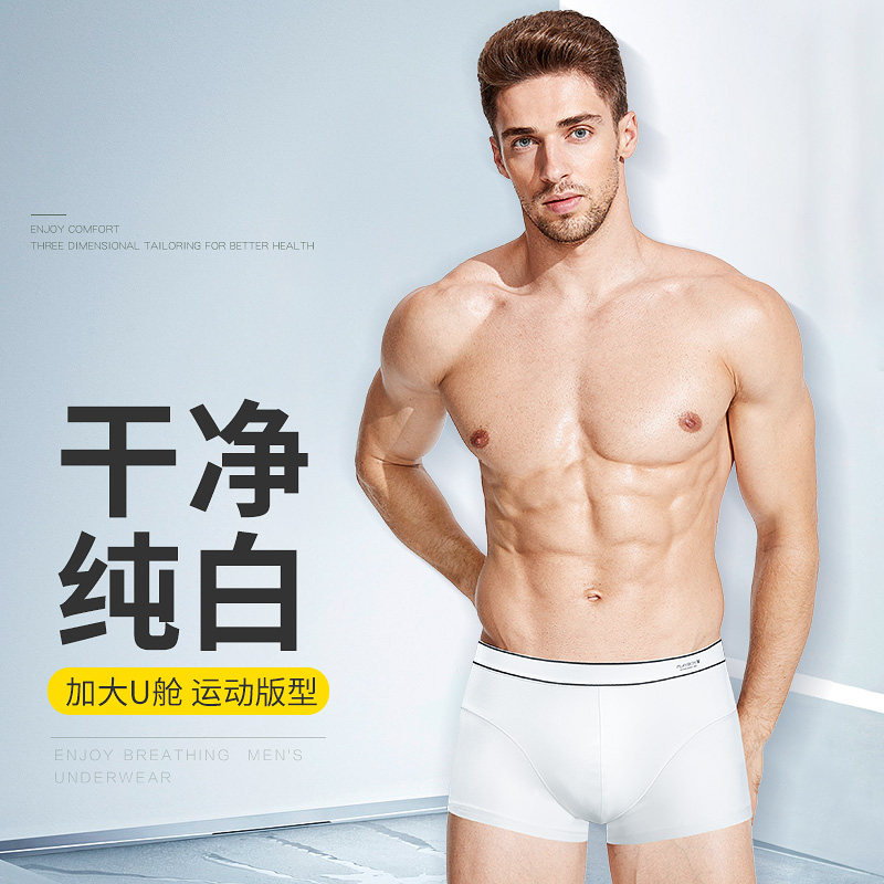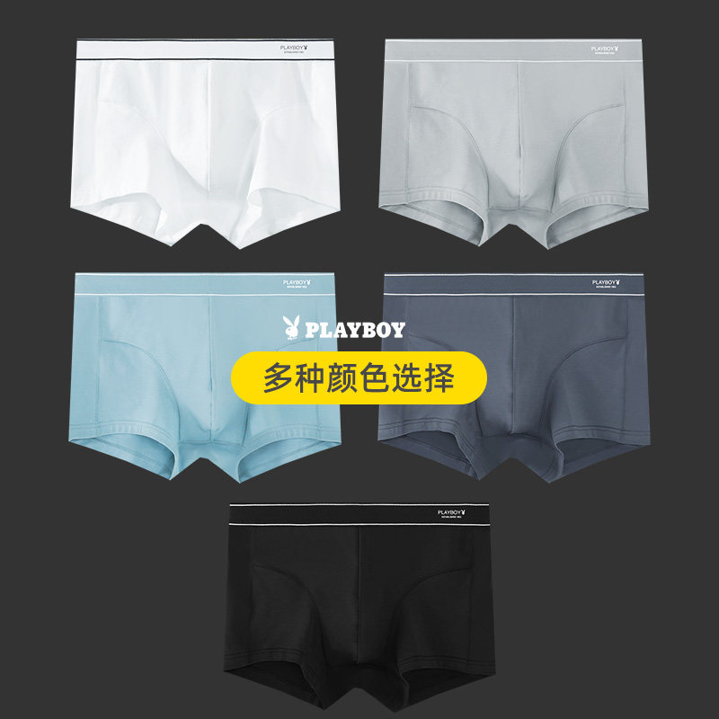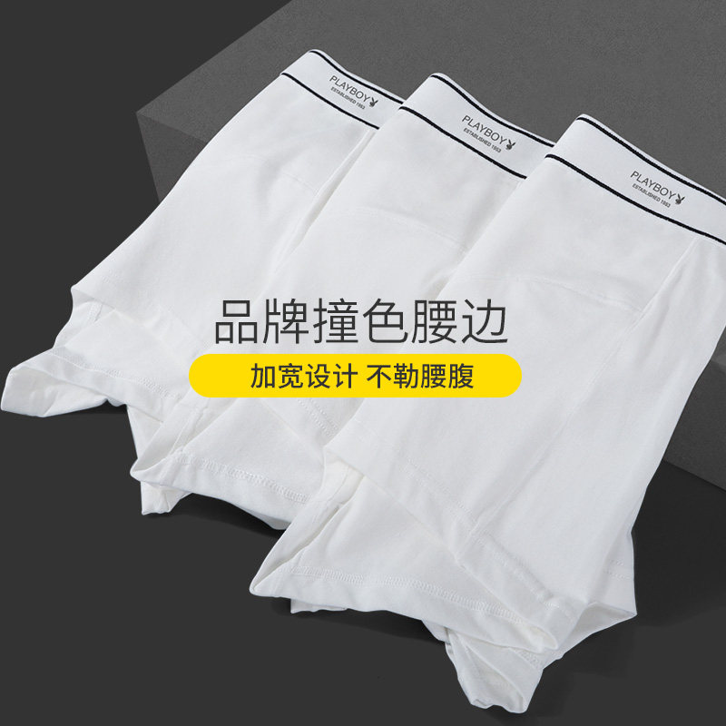 花花公子男士内裤纯棉四角裤纯白色平角裤头夏季薄款透气浅色短裤