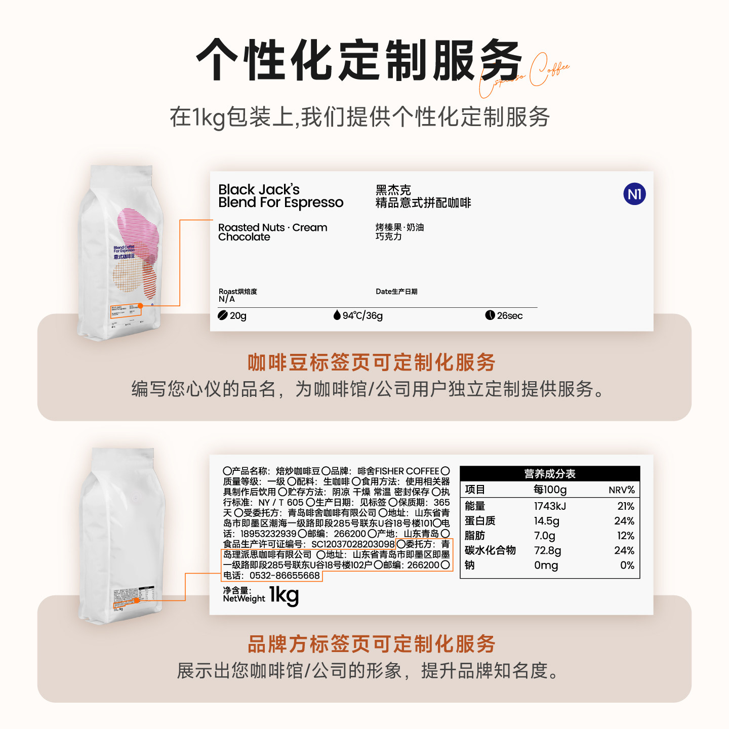 【1KG商用装】啡舍 意式拼配咖啡豆深烘焙低酸醇厚奶咖黑咖美式