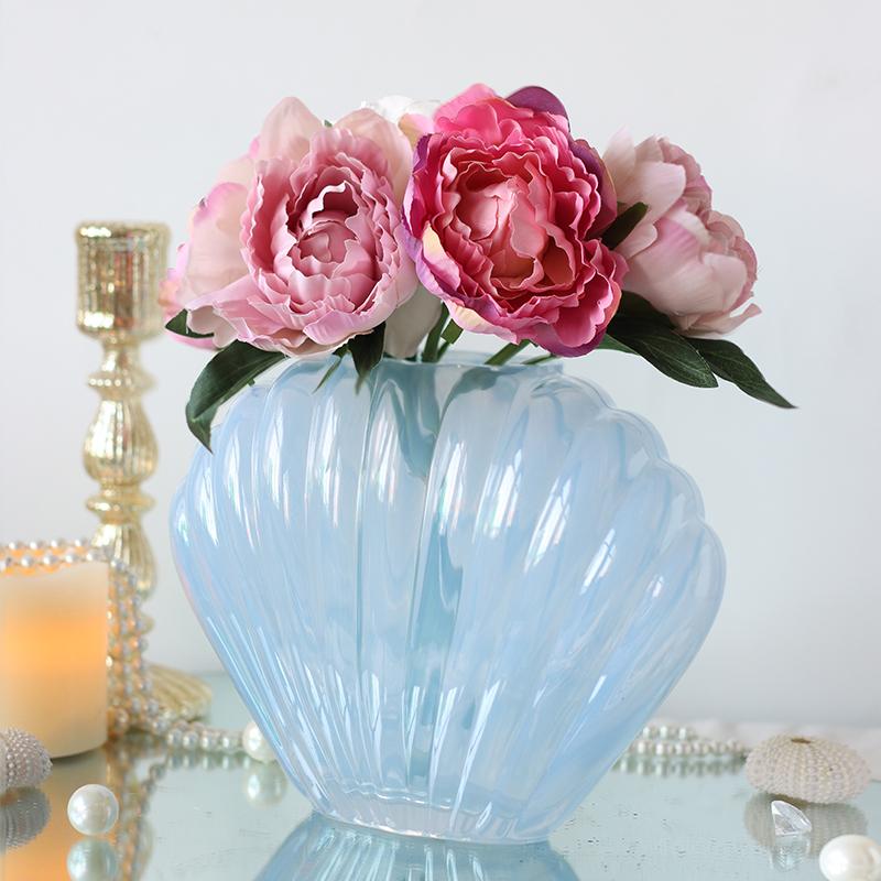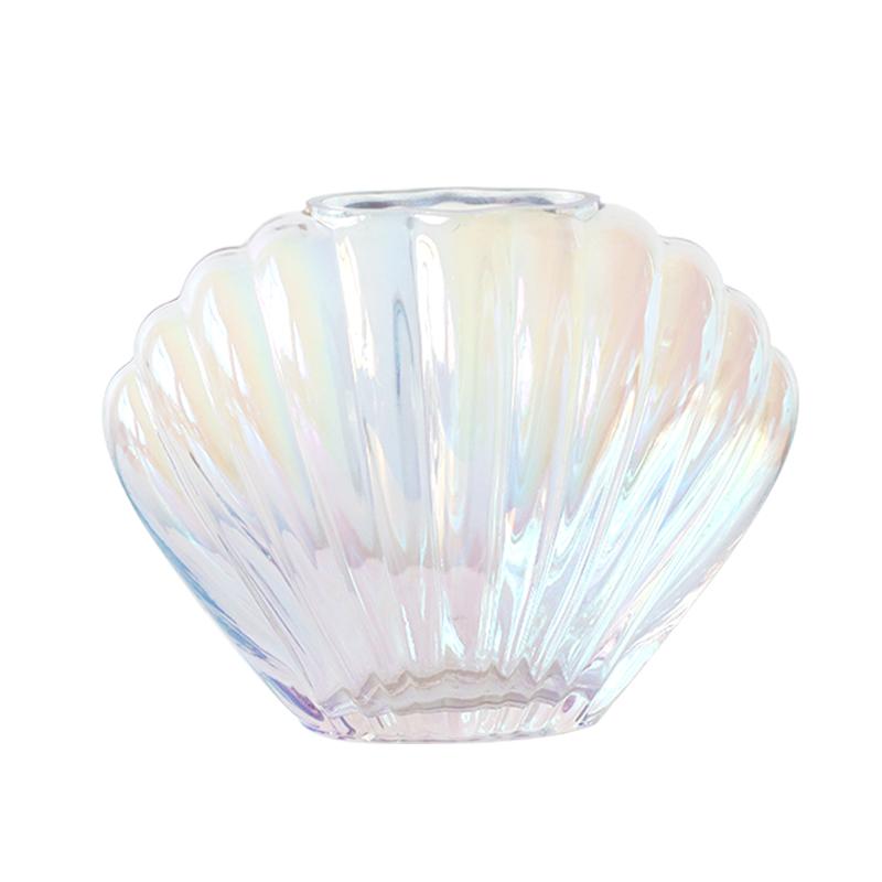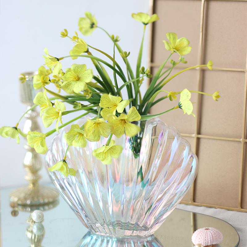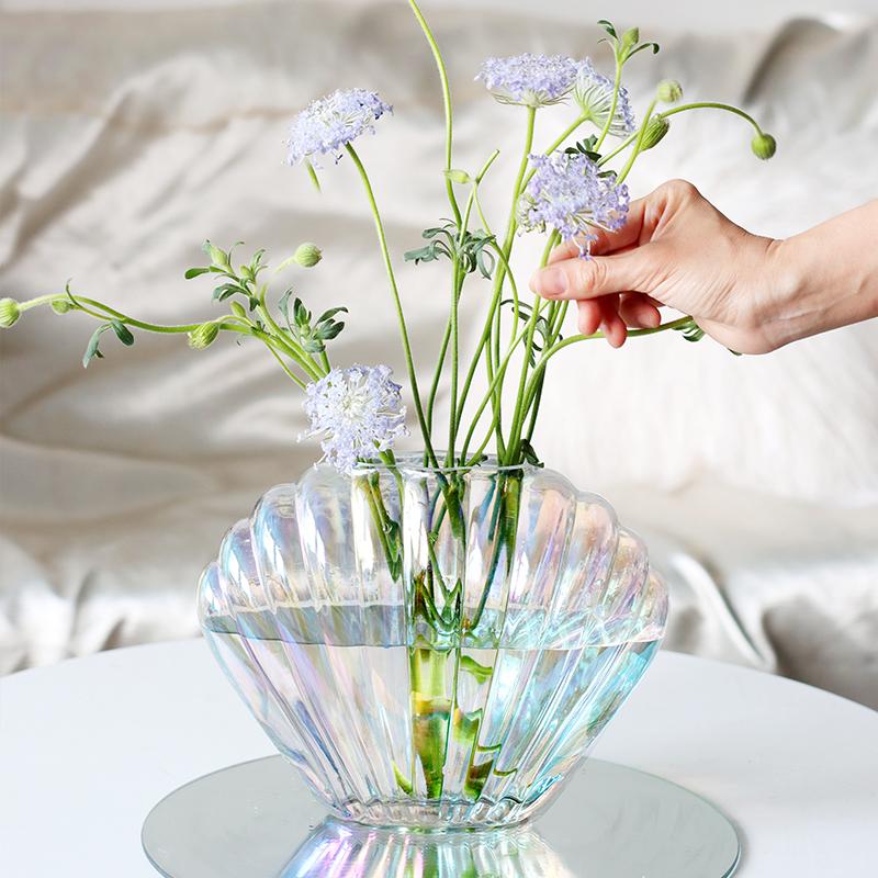 创意珠光玻璃贝壳花瓶透明轻奢高级感水培花器客厅餐桌装饰品摆件