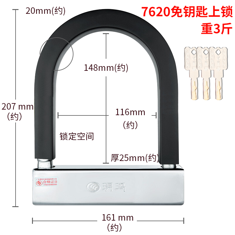玥玛U型锁电动车锁防盗锁免钥匙上锁电瓶摩托车锁自行车抗液压剪