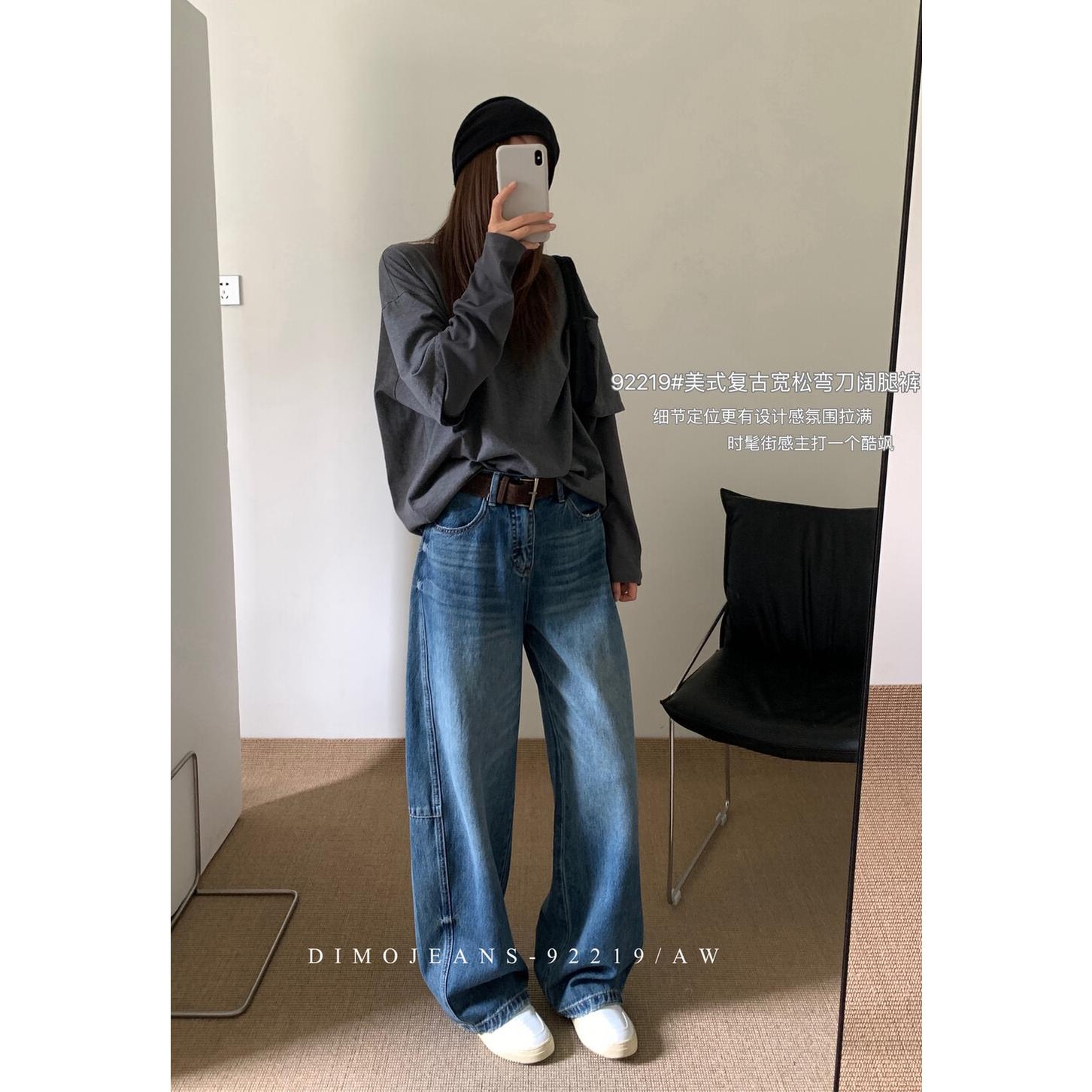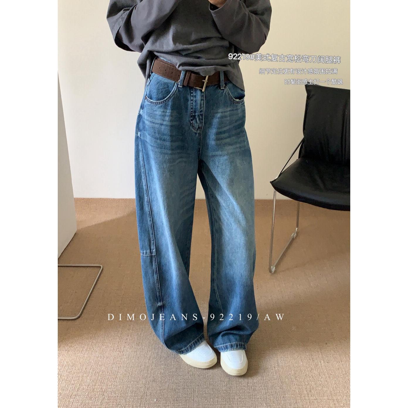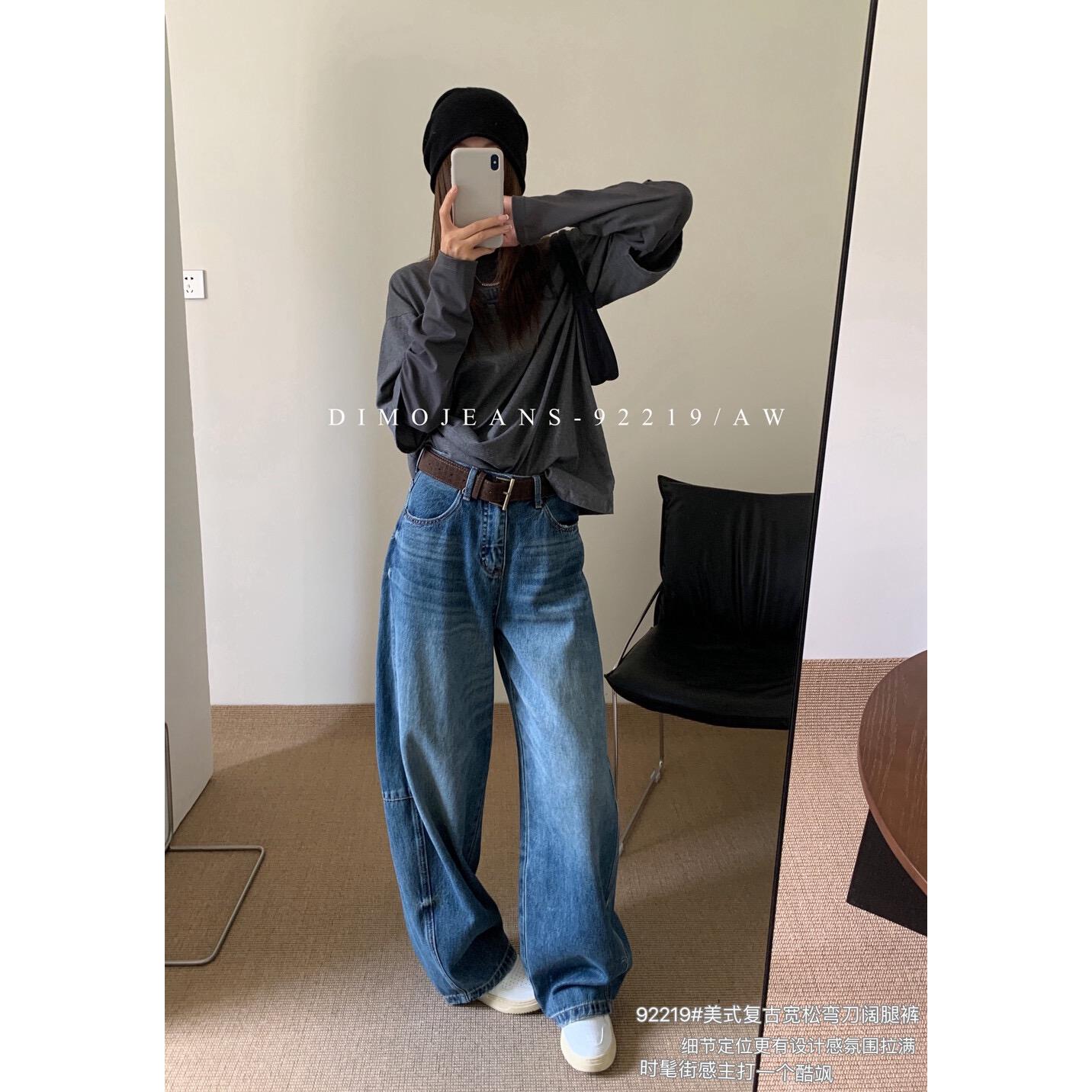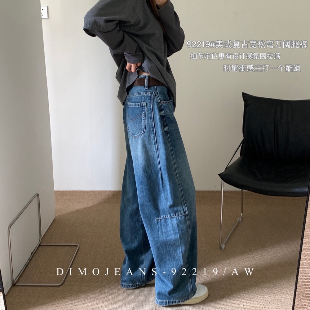 DIMO复古高腰阔腿牛仔裤女2025秋季美式时尚宽松垂感弯刀裤