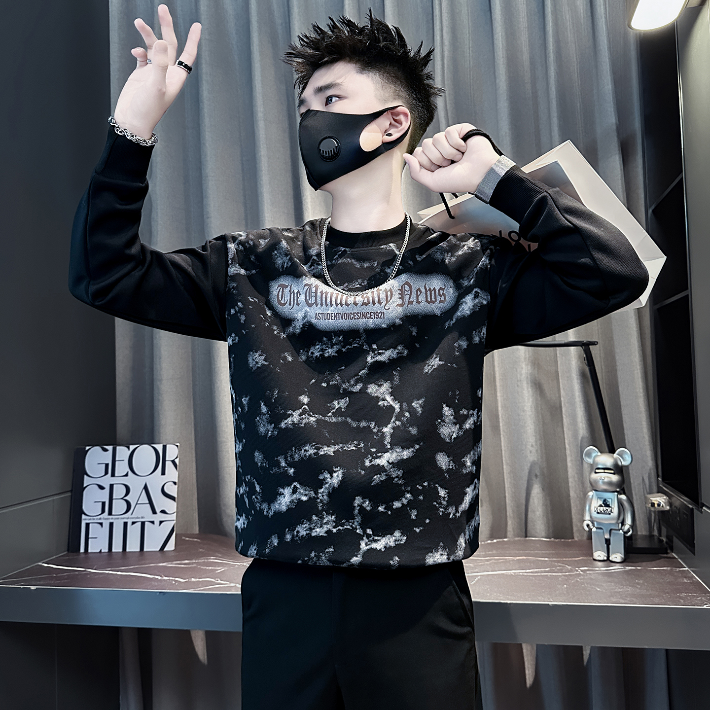 秋季小码圆领卫衣男矮个子潮牌修身XS码S号暗花字母内搭打底衫155