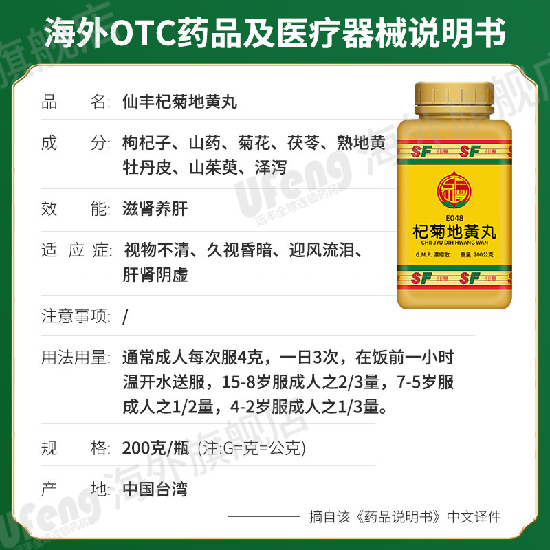 台湾仙丰杞菊地黄丸倪海厦中药滋肾养肝肝肾阴虚视物不清迎风流泪