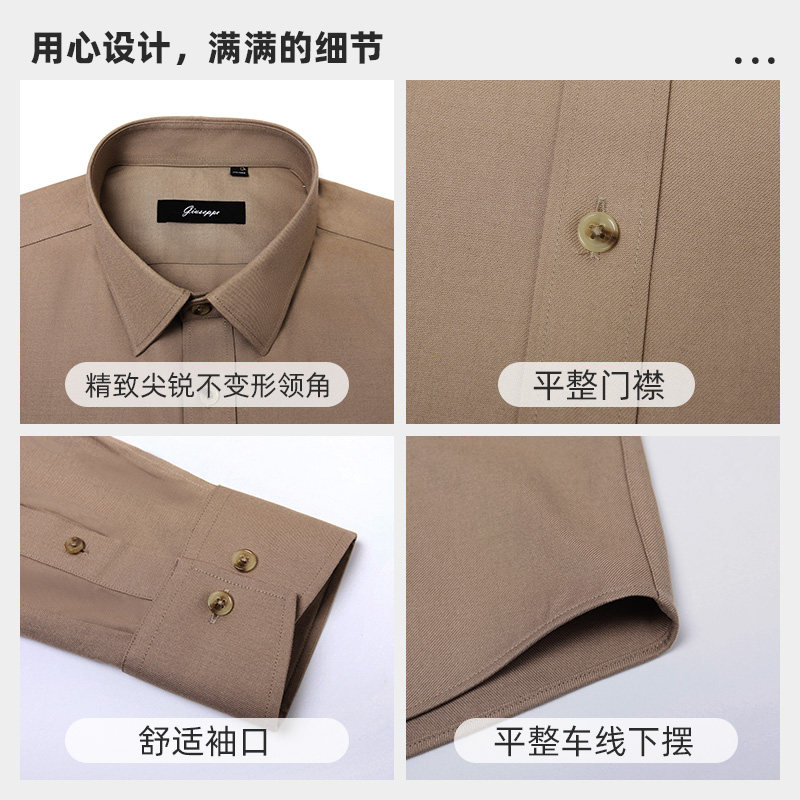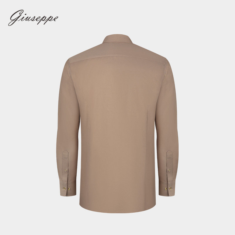 乔治白男士秋季卡其色尖领修身带刺绣长袖衬衫休闲上衣
