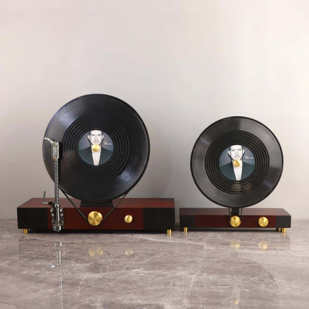 现简约复古木代质黑胶唱片机艺术视摆1757客件厅书房玄关电柜家居