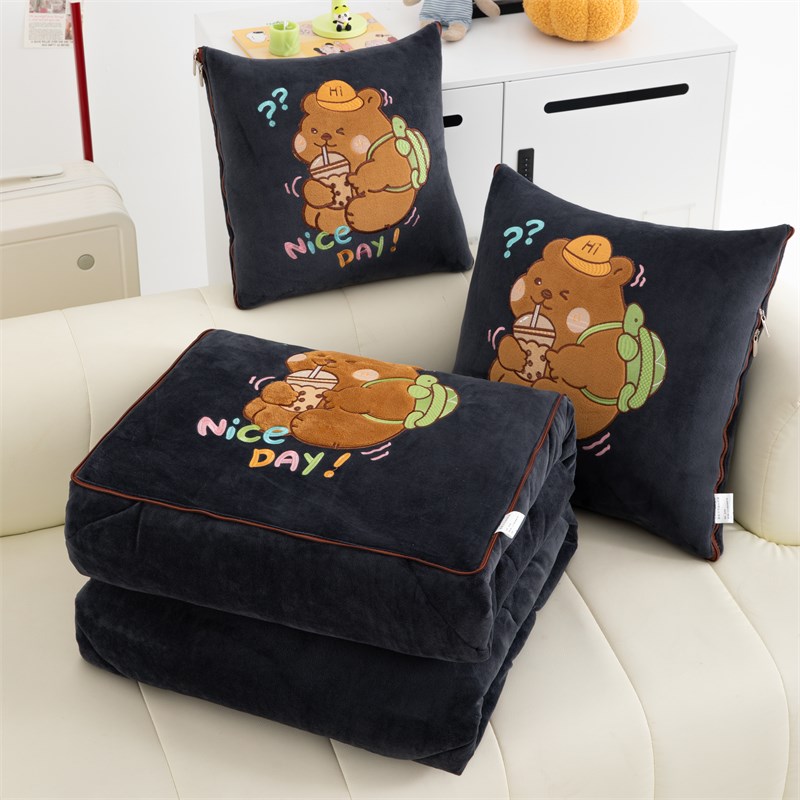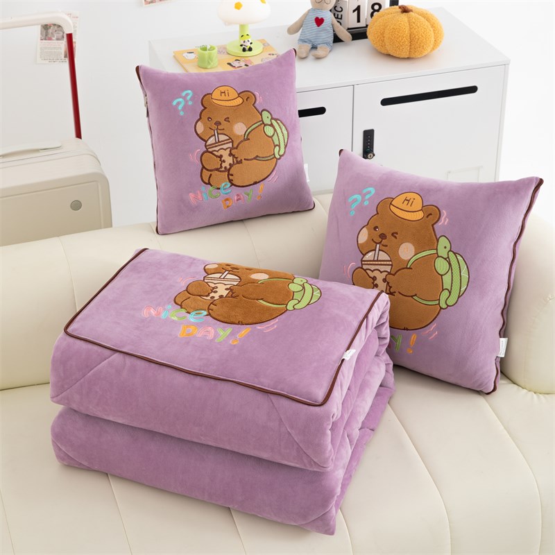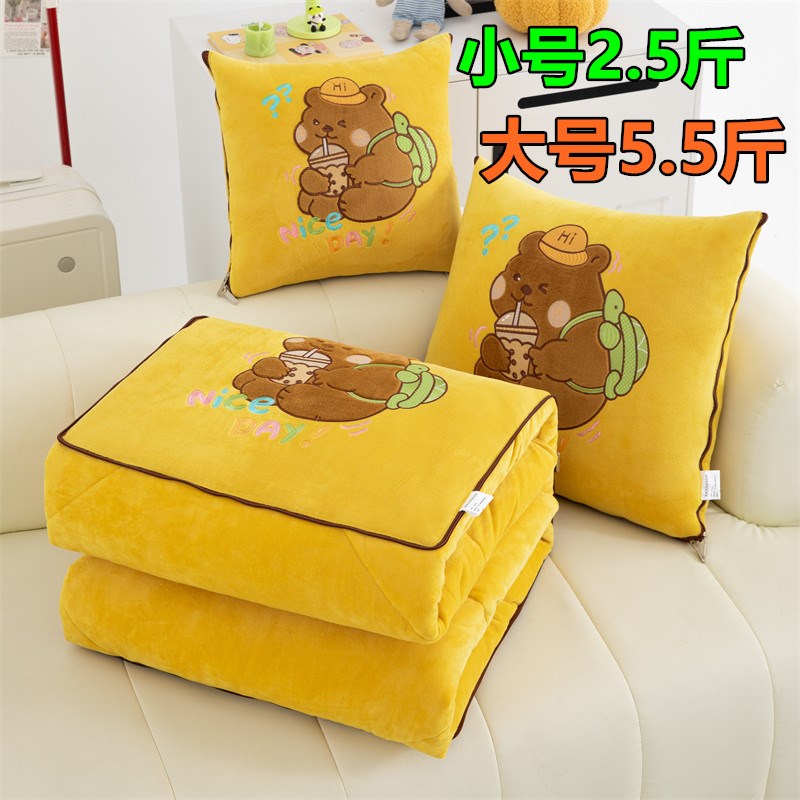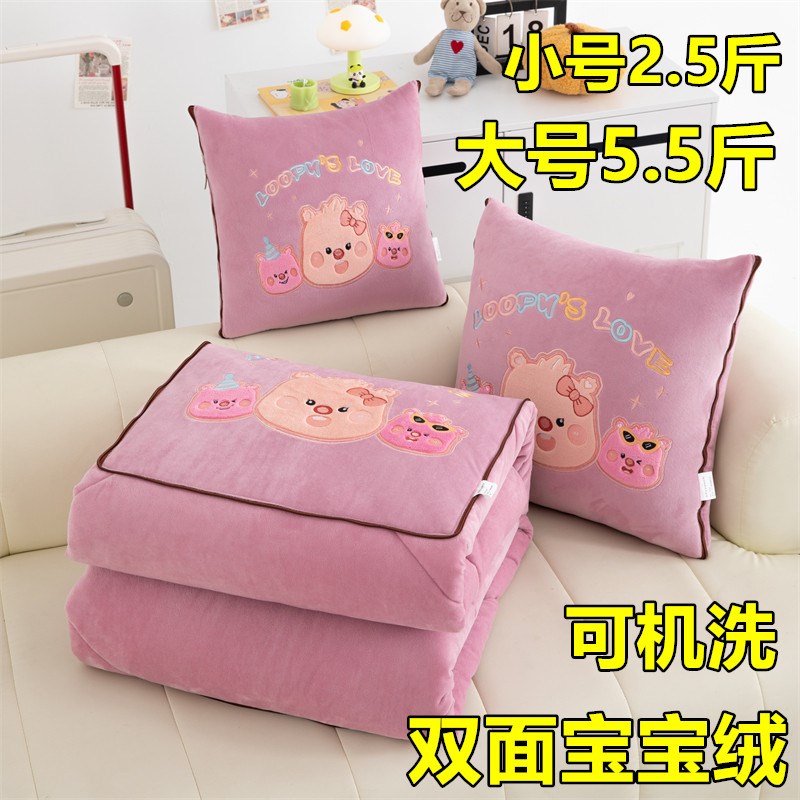 宝宝绒加厚抱枕被子两用折叠车载靠垫枕头被办Q公室沙发午睡空调