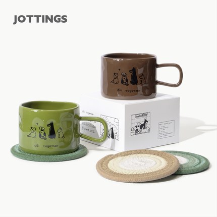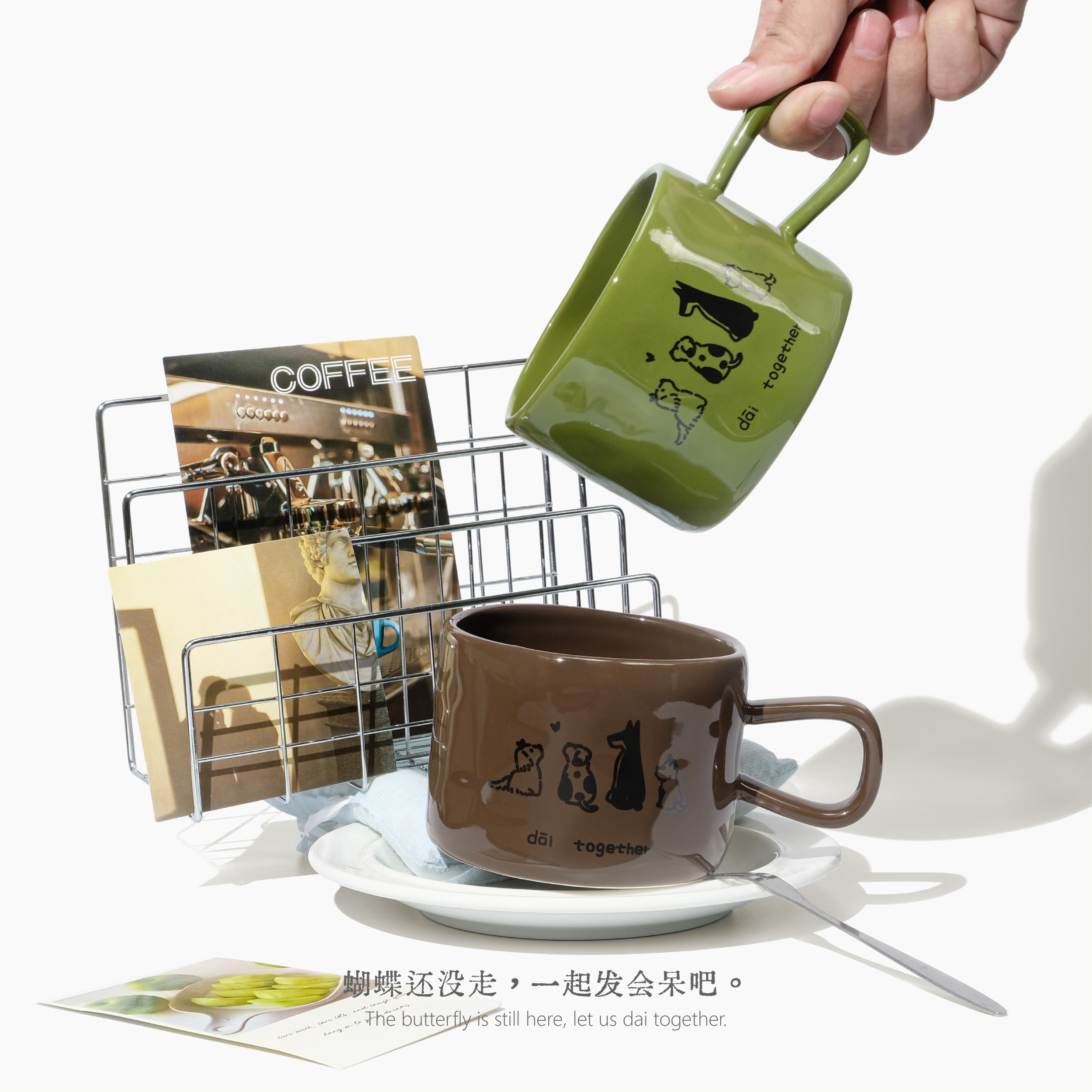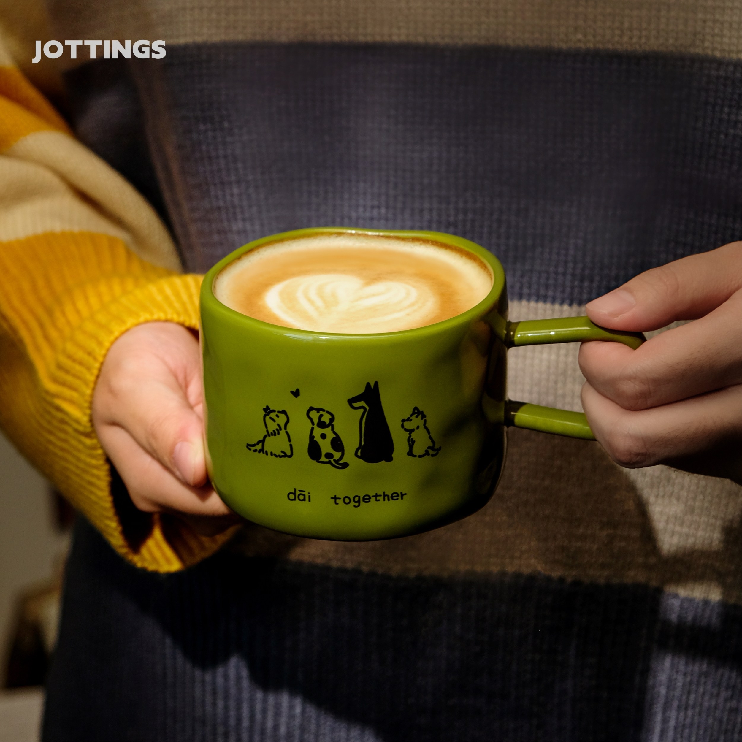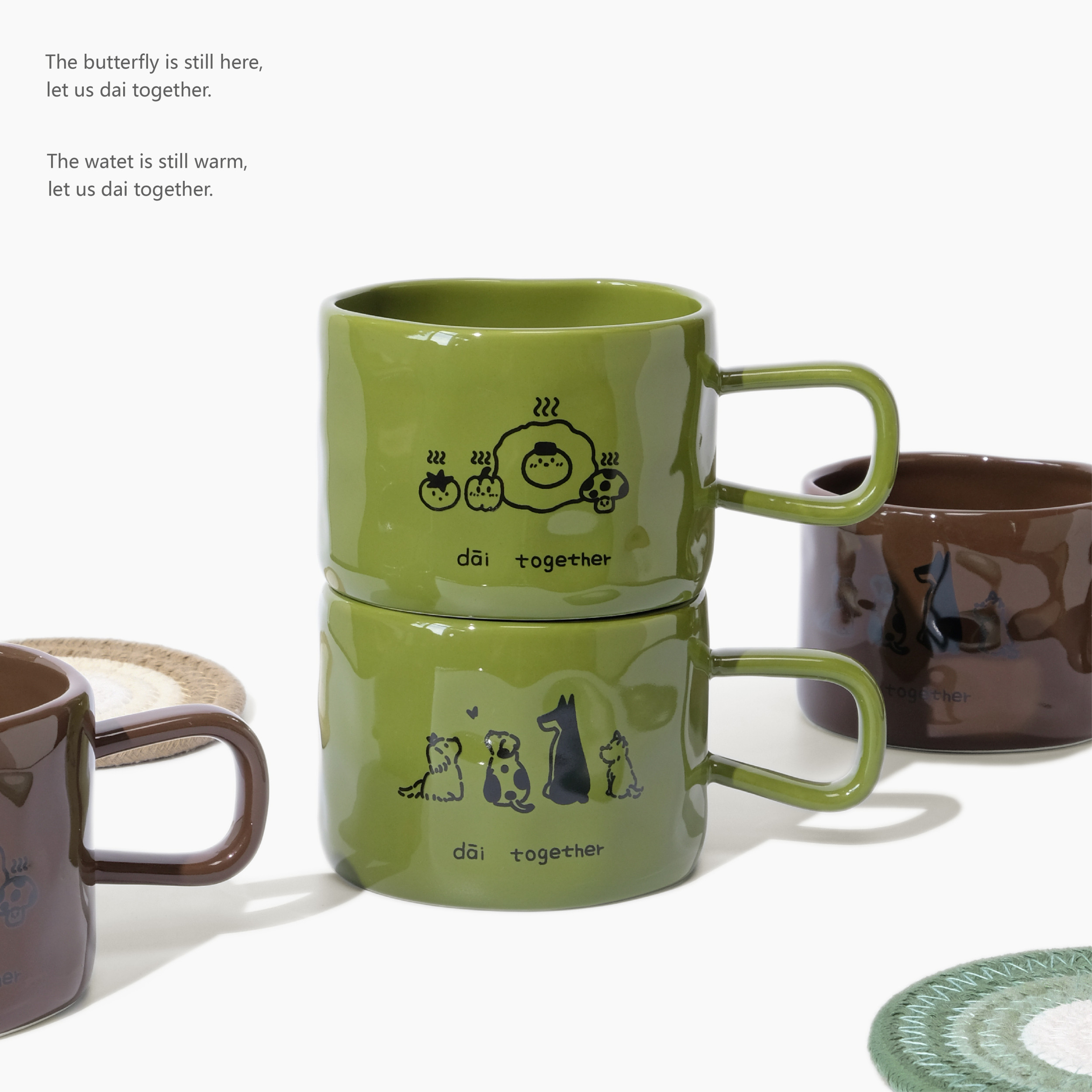 「一起发呆」拾杂原创手捏风陶瓷马克杯绿色咖啡杯早餐杯伴手礼物