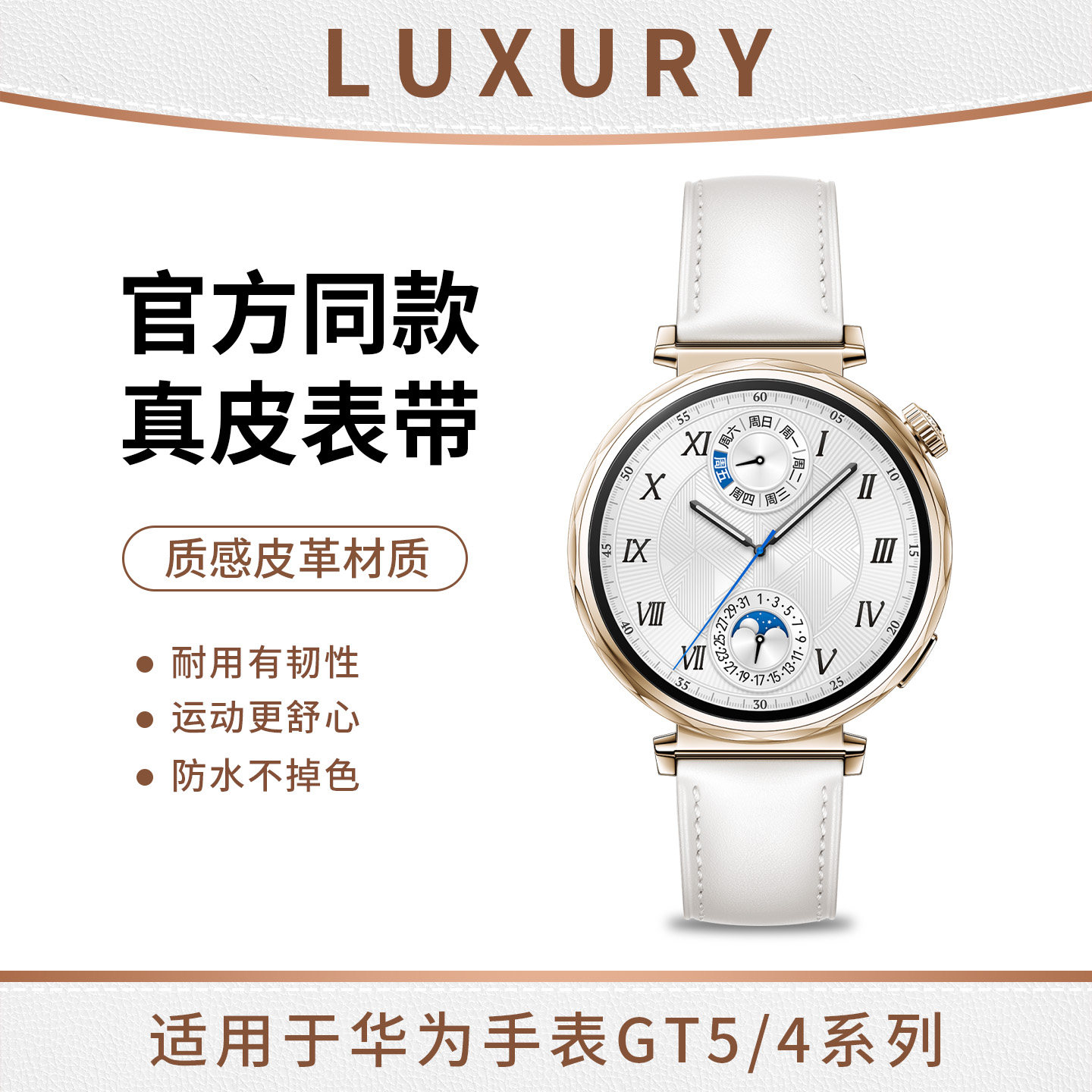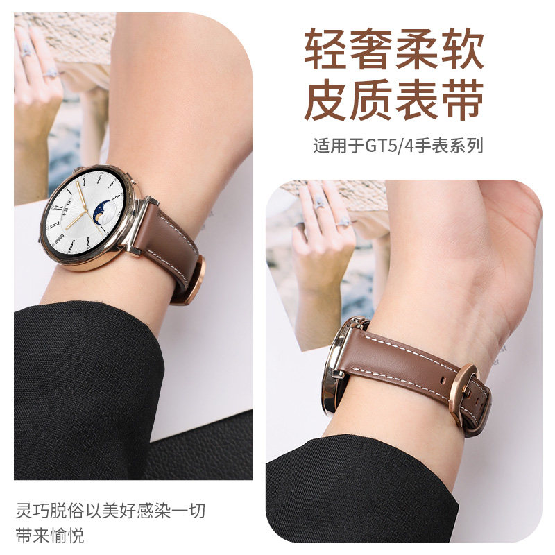 适用华为GT5表带watchgt4/gt6真皮gt3皮质watch5腕带智能手表gt5pro新款高级荔枝纹gt2e替换41mm表链配件男女