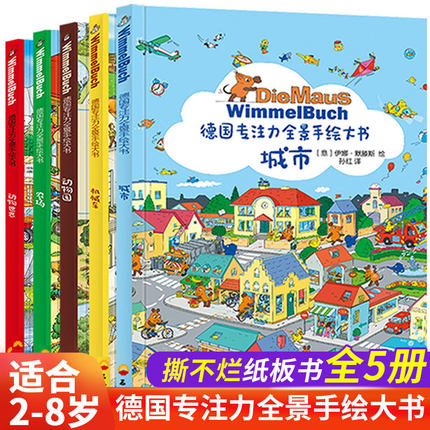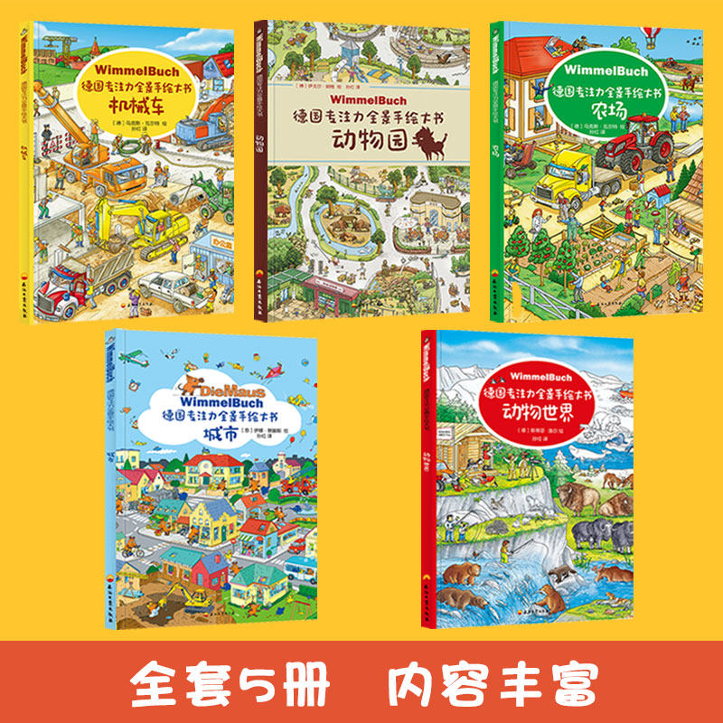 【全5册】德国专注力全景手绘大书培养孩子智力儿童逻辑思维训练书籍3-4-5-7岁幼儿早教益智游戏绘本找不同迷宫书隐藏的图画捉迷藏
