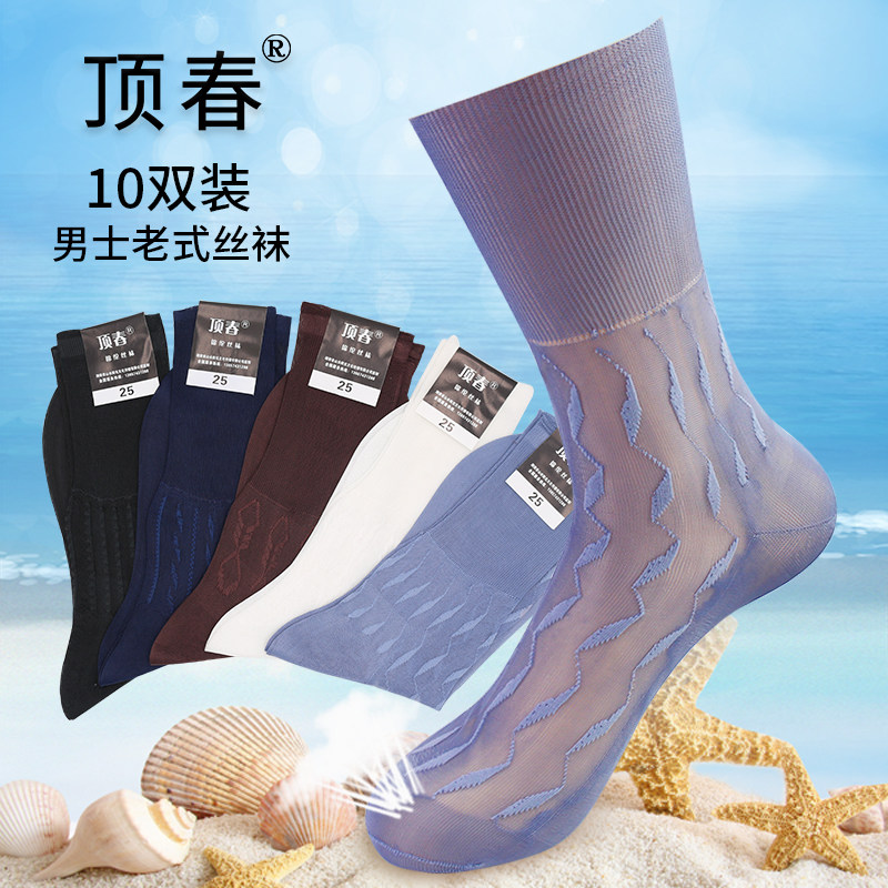 顶春牌锦纶丝袜男尼龙丝光袜老式中老年人松口耐磨袜子夏季新款薄