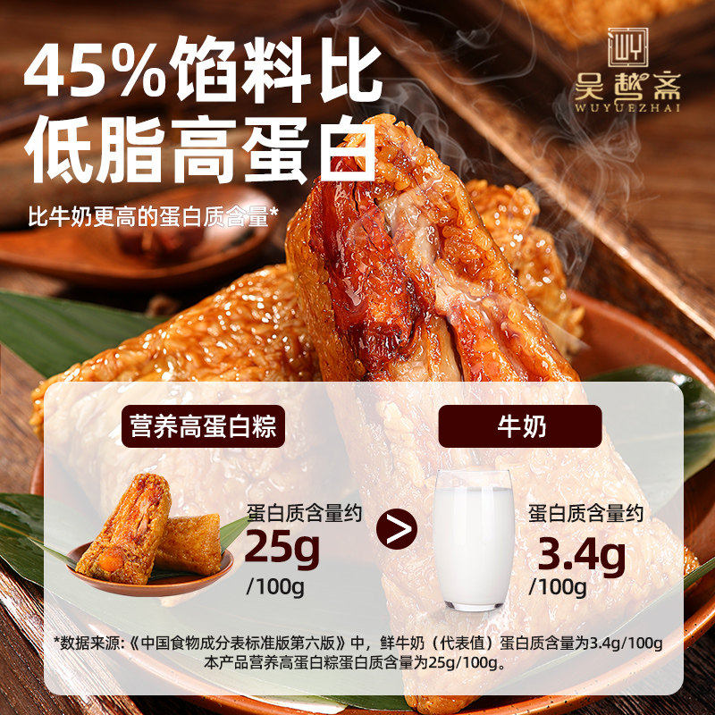 吴越斋肉粽五花肉蛋黄粽手工端午嘉兴手工包制粽子250g早餐粽子