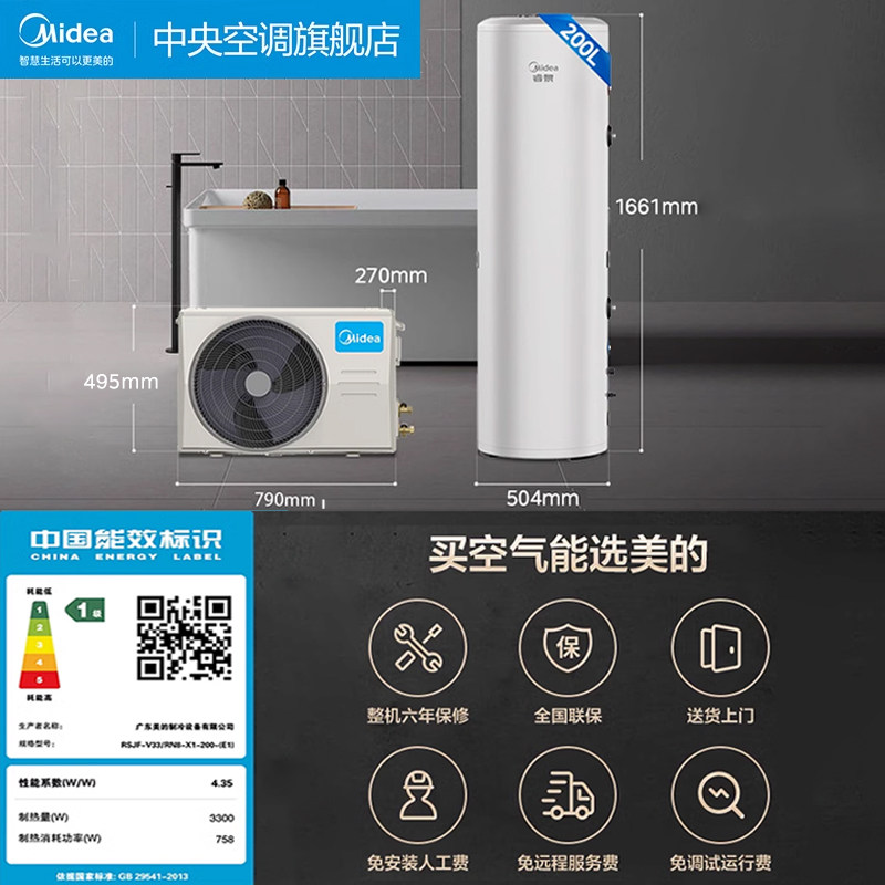 美的空气能热水器家用200L节能型一级能效除菌电辅热睿泉