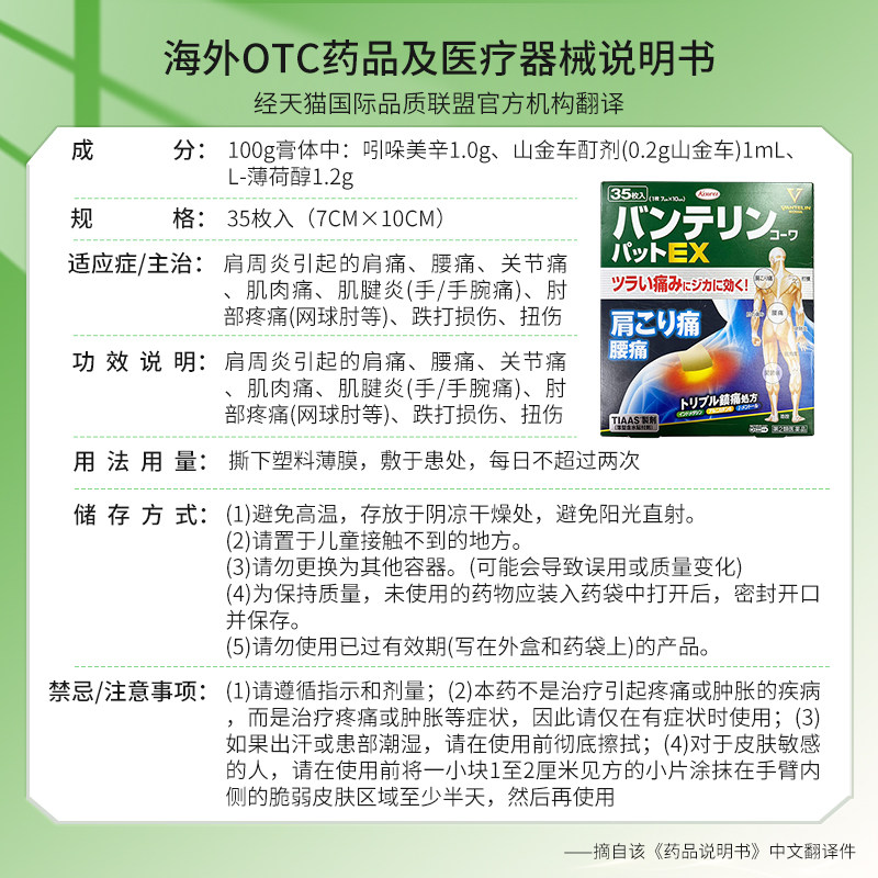 日本兴和Kowa膏药贴肌肉风湿关节疼肩周炎腰痛止痛贴膏药非久光贴