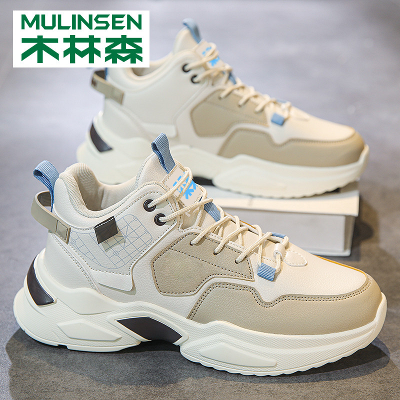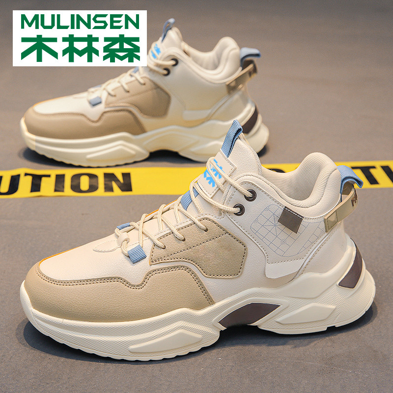 木林森男鞋秋冬季2025年新款潮流休闲运动跑步中高帮皮面老爹潮鞋