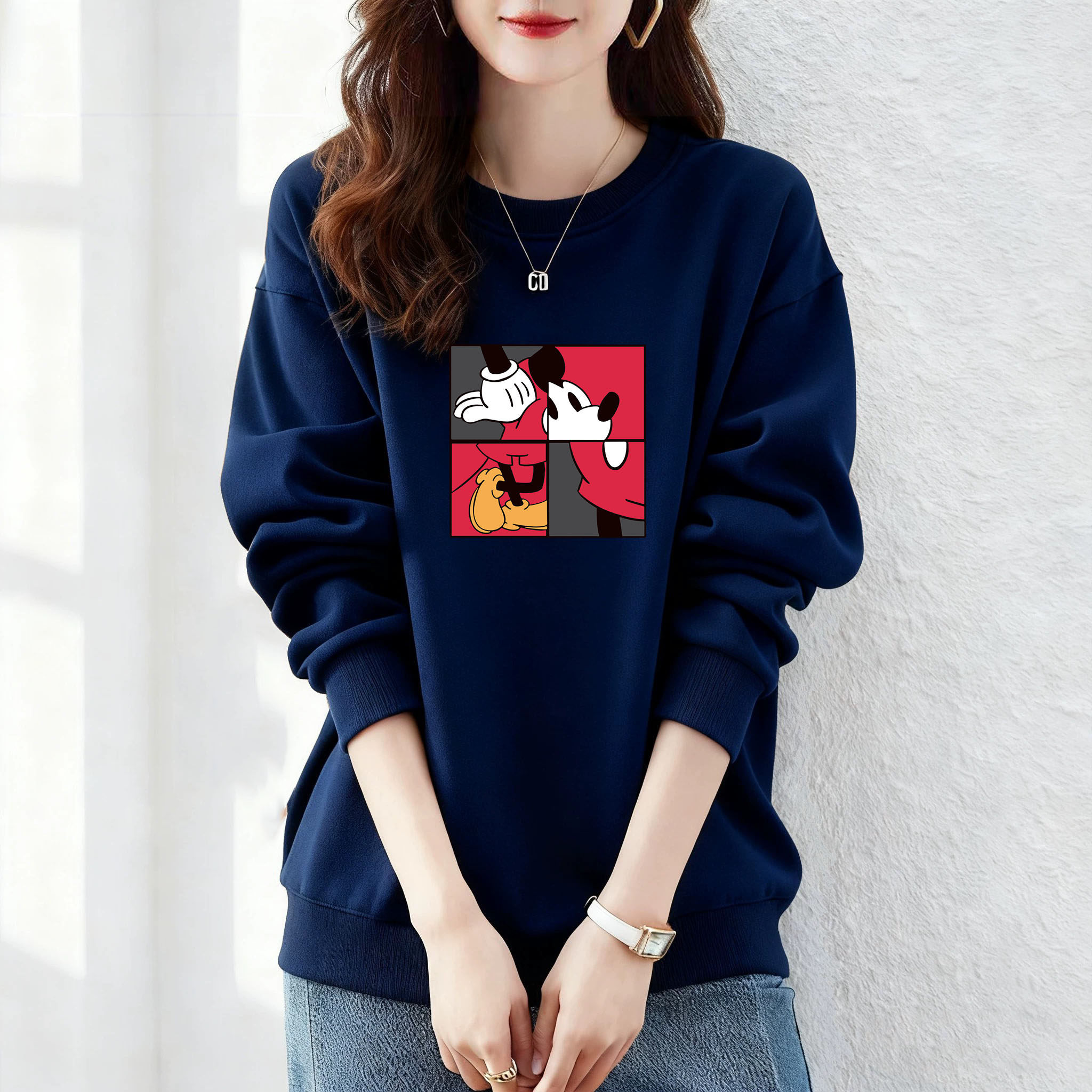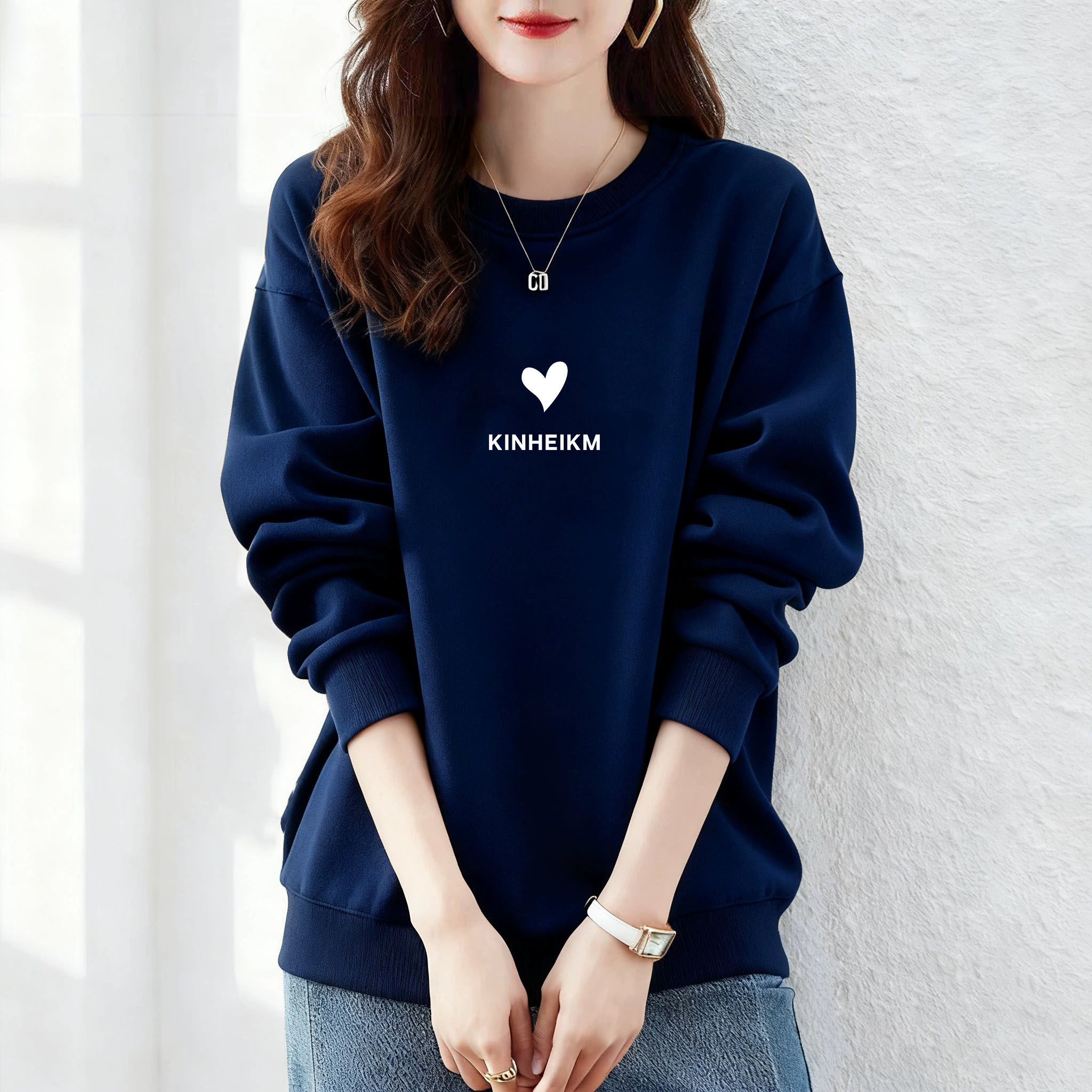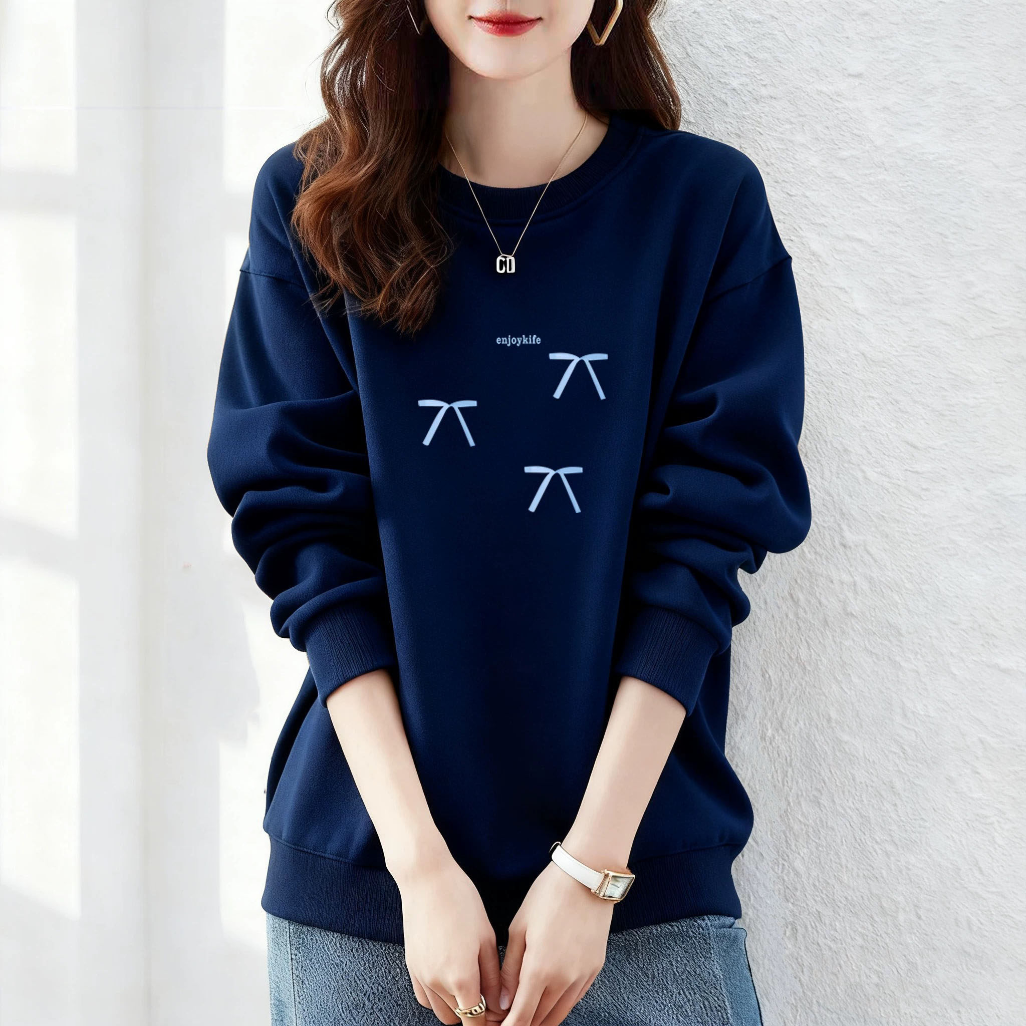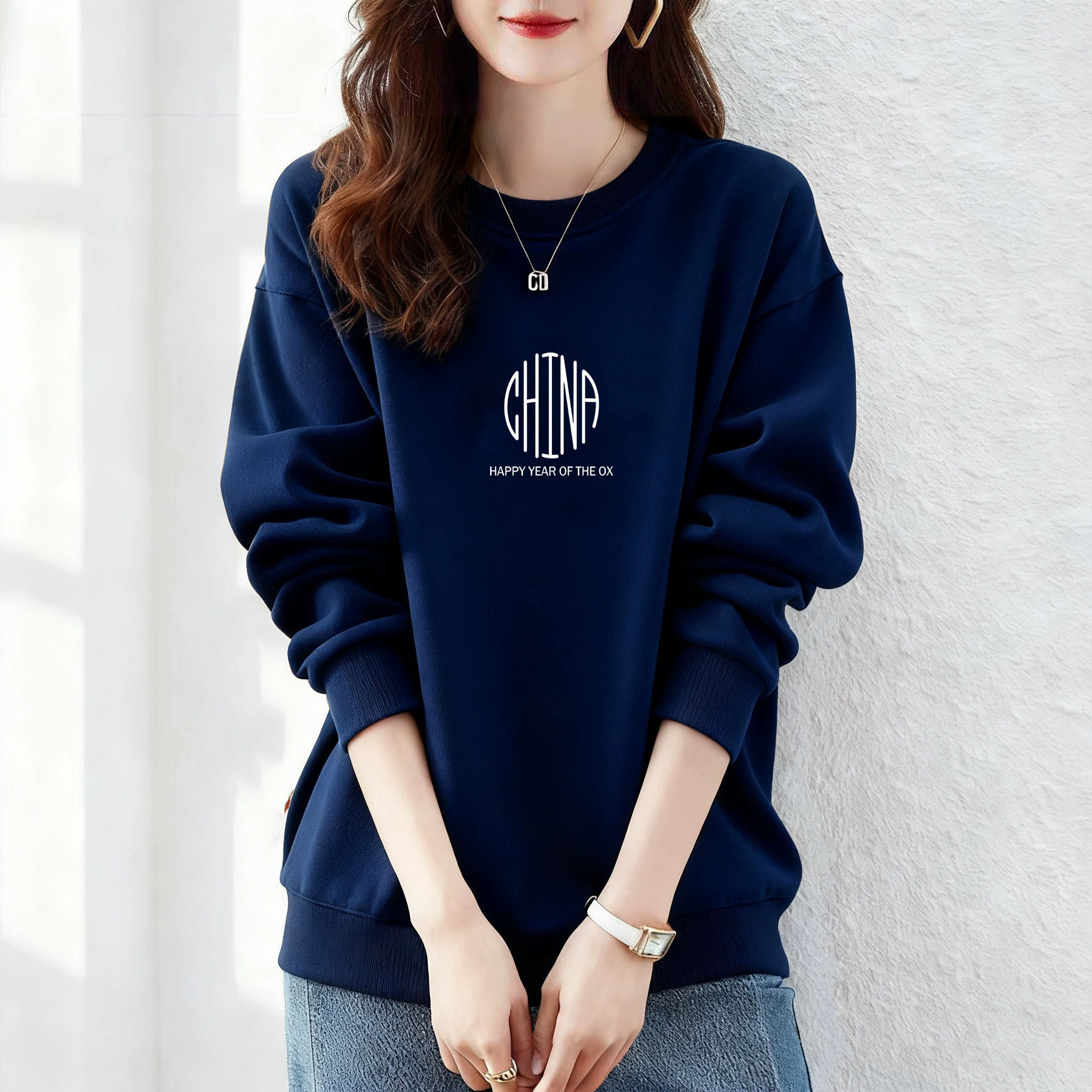 纯棉美式复古圆领卫衣女加绒加厚显瘦春2025秋冬新款长袖保暖上衣