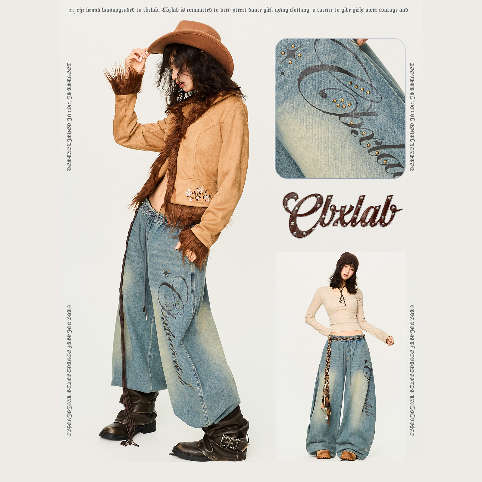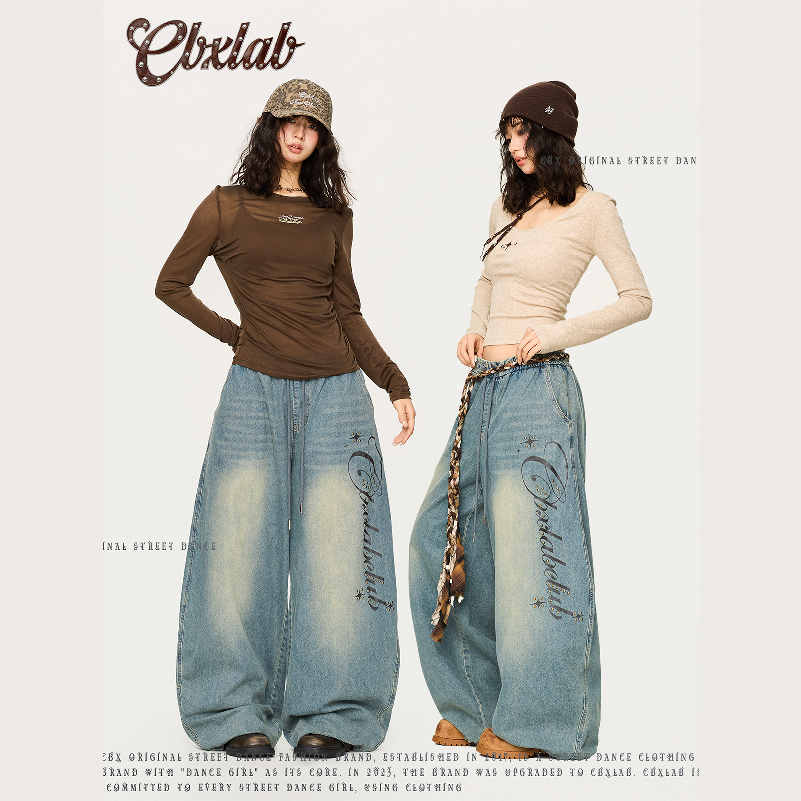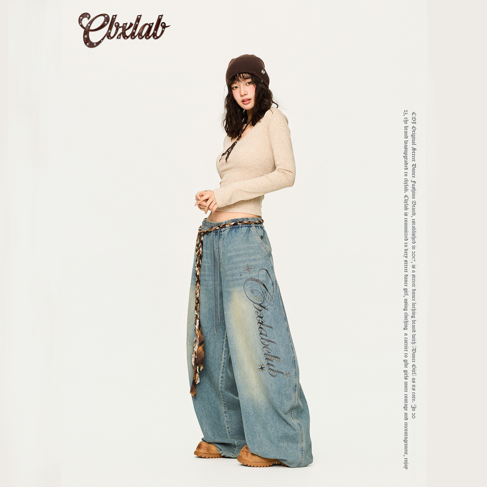 CBXLAB街舞潮牌废土做旧复古嘻哈牛仔裤美式街头爵士香蕉休闲长裤