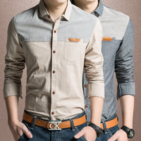 秋季男士牛津纺休闲韩版修身长袖衬衣棉加厚加绒衬衫大码牛仔保暖