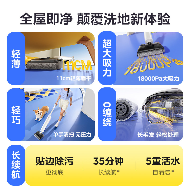 美的S20劲吸0缠毛纤薄轻量洗地机