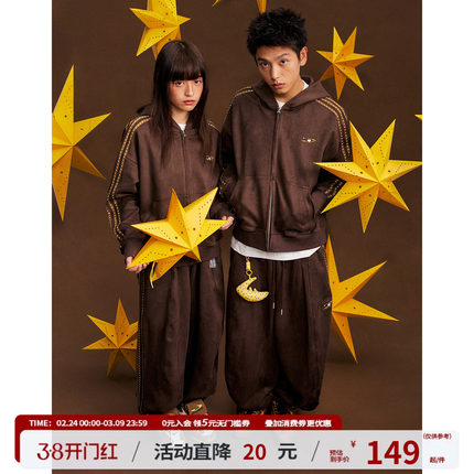 江南先生NewJNXS星宇宙仿麂皮星星织带宽松卫衣裤子休闲情侣套装