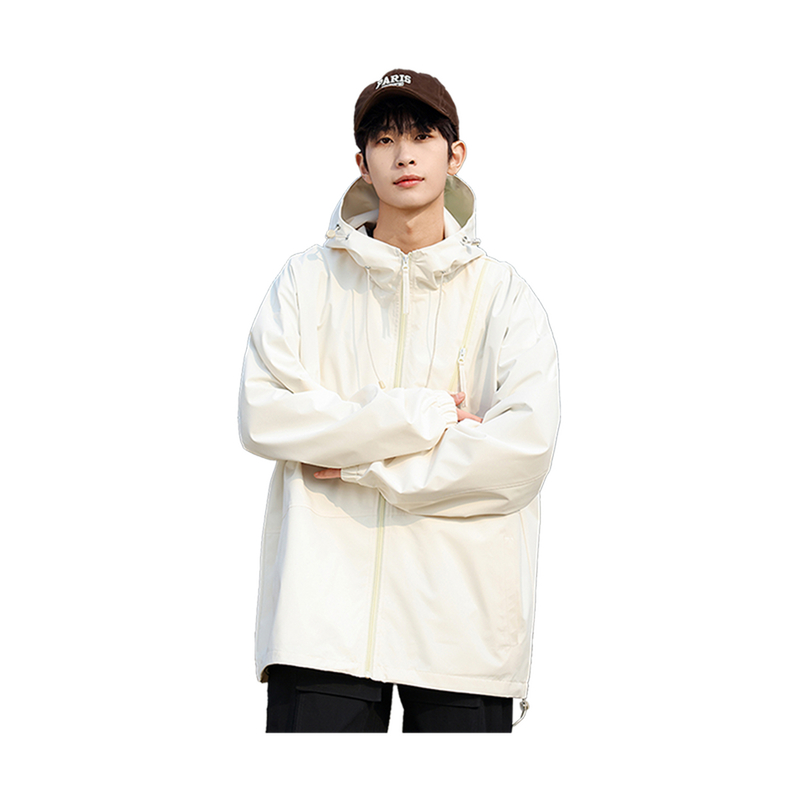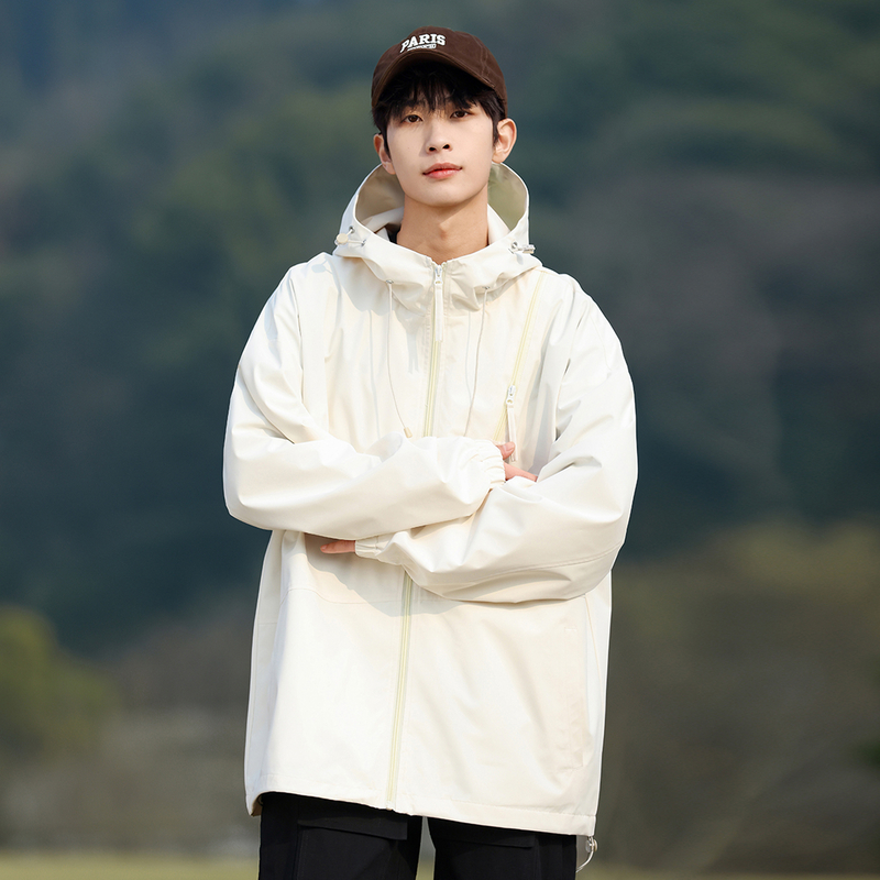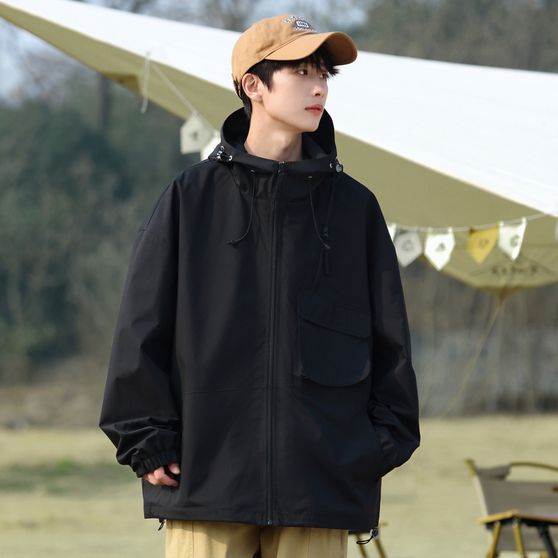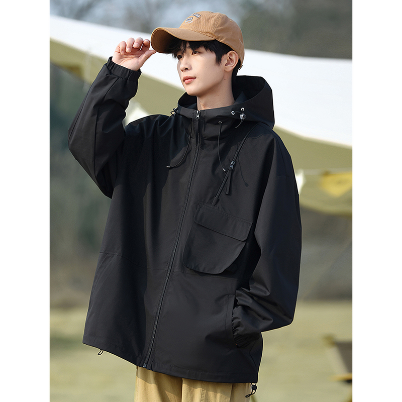 E5真维斯男装2025春季新款 潮流时尚纯色宽松青年连帽夹克外套男
