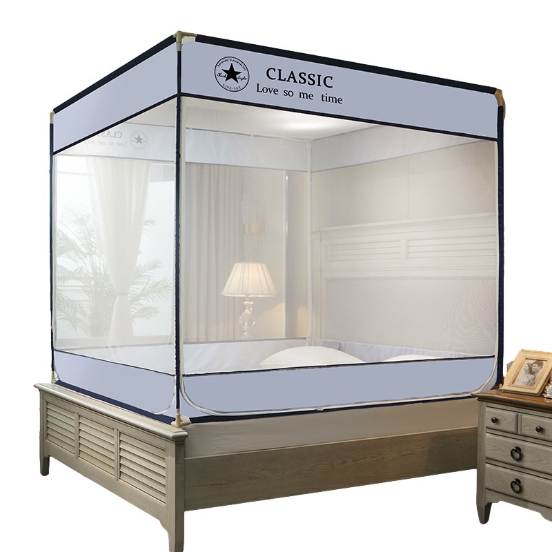 家用蚊帐床笠款坐床式好兆头三开门儿童防摔拉链方顶纱帐远梦