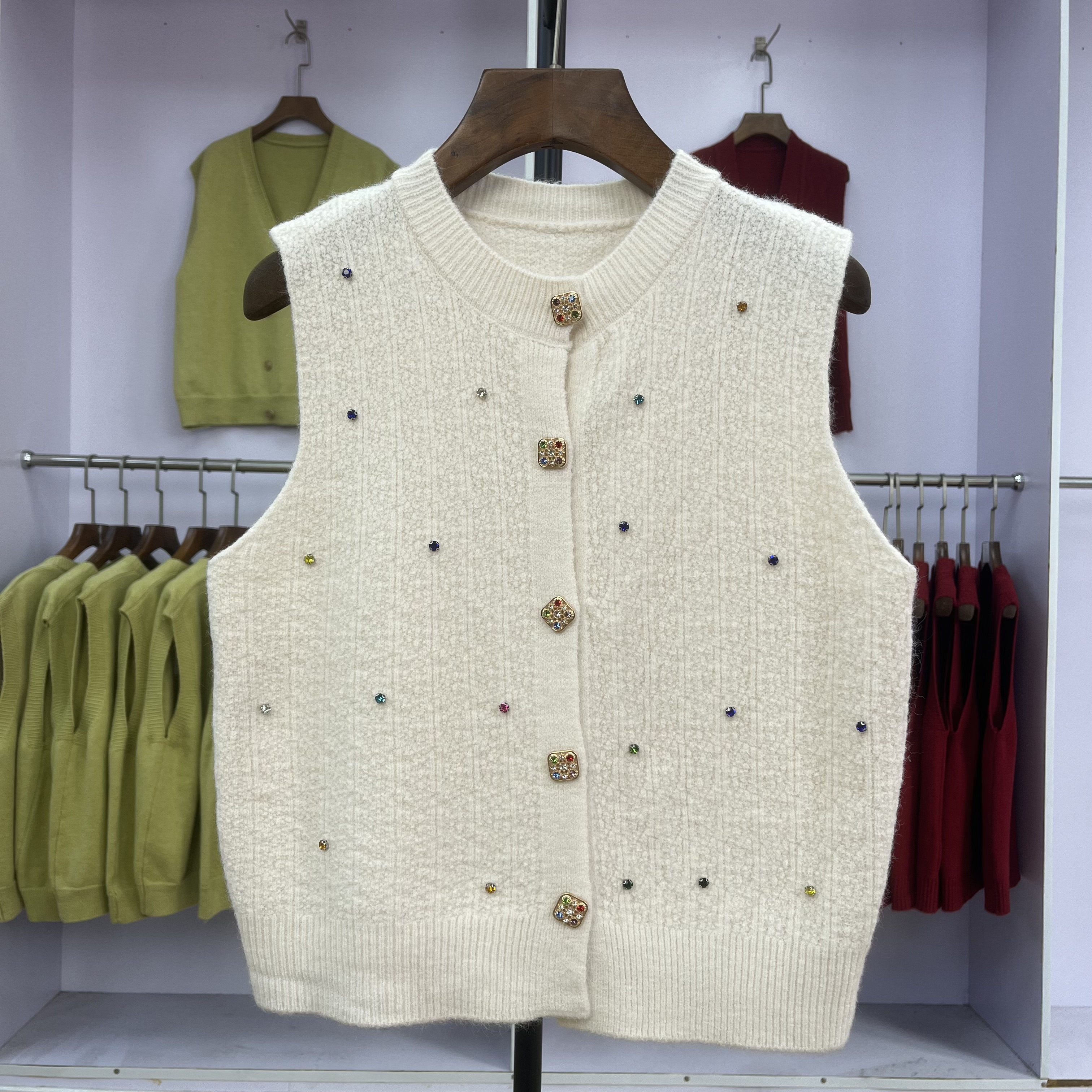 189 针织马甲女2025新款春秋圆领钉珠无袖坎肩背心外搭开衫上衣