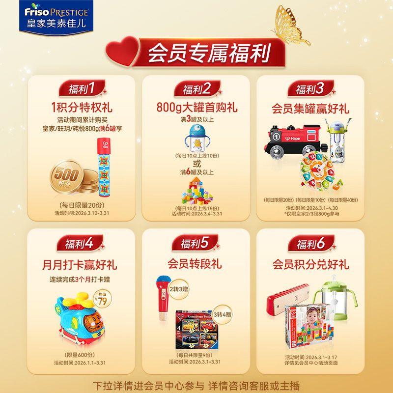 【乳铁蛋白】皇家美素佳儿较大婴儿配方奶粉2段800g*3罐