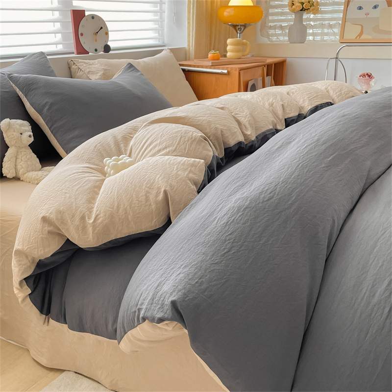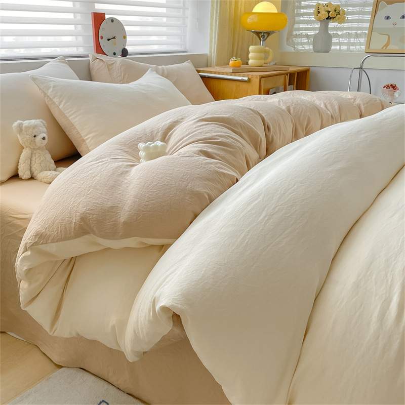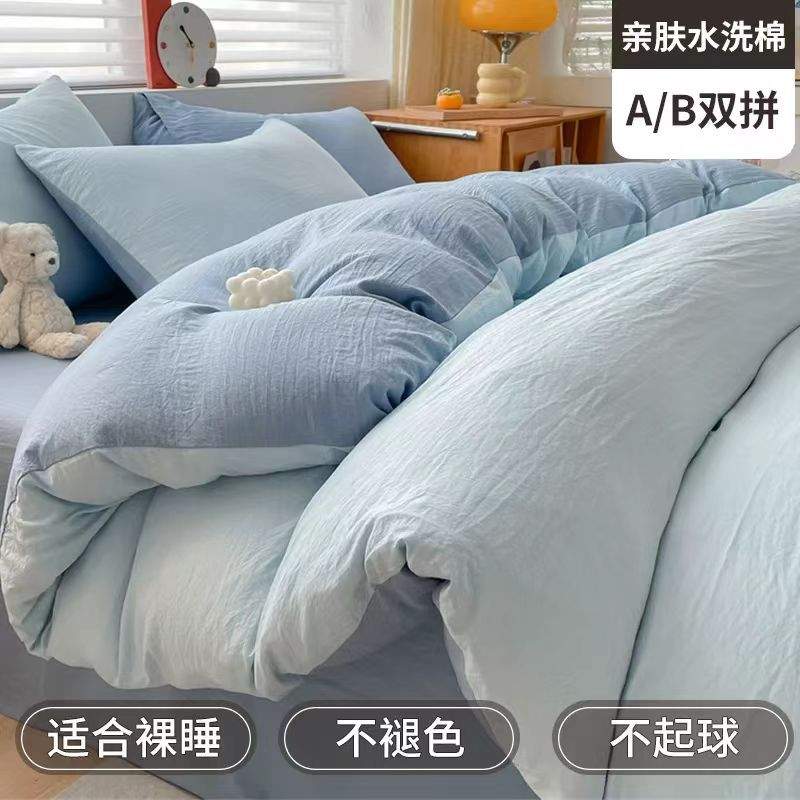 纯色水洗棉四件套学生宿舍三件套单双人被套床单床笠床上用品